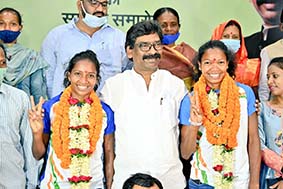 रांची। सीएम हेमंत सोरेन ने कहा है कि टोक्यो ओलंपिक में हिस्सा लेने वाली महिला हॉकी टीम की खिलाड़ी निक्की प्रधान व सलिमा टेटे को उनकी इच्छानुसार शहर में मकान मिलेगा। श्री सोरेन बुधवार को उनके सम्मान में आयोजित कार्यक्रम में बोल रहे थे। इस कार्यक्रम दोनों खिलाड़ियों को 50-50 लाख, स्कूटी, लैपटॉप व स्मार्ट फोन प्रदान किया गया। उन्होंने कहा कि टोक्यो ओलंपिक में सलीमा टेटे और निक्की प्रधान के शानदार प्रदर्शन पर राज्यवासियों को गर्व है। खिलाड़ियों को सरकार से जोड़ने की दिशा में ही खिलाड़ियों को सम्मानित करने की पहल सरकार कर रही है। खिलाड़ियों के प्रति सम्मान और संवेदनशीलता के साथ पेश आने की जरूरत है। उन्होंने कहा कि जहां हर दिन जीविका को लेकर चुनौतियों से जूझना पड़ता है। वहां सीमित संसाधनों के बीच यहां के बेटे-बेटियां खेल की दुनियां में अपने शानदार प्रदर्शन से राज्य और देश का नाम रौशन कर रहे हैं। उन्होंने कहा कि झारखंड की इन दो बेटियों ने टोक्यो ओलंपिक में शानदार प्रदर्शन कियाण् भारतीय महिला हॉकी टीम भले ही मेडल जीतने से चूक गई हो। लेकिन इन्होंने दुनिया के बेहतरीन हॉकी खेलने वाले देशों के खिलाफ जिस तरह का प्रदर्शन किया। वह किसी मेडल से कम नहीं है। झारखंड समेत पूरे देशवासियों को इनपर गर्व है। मुख्यमंत्री ने इन बेटियों को बेहतरीन खेल के लिए शुभकामनाएं देते हुए उज्जवल भविष्य की कामना की। मुख्यमंत्री ने इस समारोह में निक्की प्रधान और सलीमा टेटे को 50-50 लाख रुपए का चेक, एक-एक स्कूटी, लैपटॉप और स्मार्ट फोन प्रदान कर सम्मानित किया। सीएम ने कहा कि इन दोनों को उनकी इच्छा के मुताबिक वाले शहर में लगभग तीन हजार स्क्वायर फीट का मकान सौगात के रुप में सरकार देगी। उन्होंने यह भी कहा कि इन दोनों बेटियों ने सीमित संसाधनों के बीच अपना मुकाम बनाया है। यह बहुत बड़ी उपलब्धि है। हमें अपने इन बेटियों पर गर्व हैण् लेकिनए हम खेल और खिलाड़ियों के प्रति सम्मान और संवेदनशीलता के साथ पेश आएंए इसका पूरा ध्यान रखना होगा। उन्होंने कहा कि राज्य अब खेलों में भी अपनी अलग पहचान बनाने की दिशा में तेजी से आगे बढ़ रहा है। इस दिशा में खेल और खिलाड़ियों के हित में सरकार चरणबद्ध तरीके से कदम उठा रही है। आने वाले दिनों में और तेजी आएगी। राज्य गठन के बाद पहली बार खेल पदाधिकारियों की नियुक्ति हुई। राष्ट्रीय और अंतराष्ट्रीय प्रतियोगिताओं में बेहतर प्रदर्शन करने वाले खिलाड़यों की सीधी नियुक्ति हो रही हैण् अबतक चालीस खिलाड़ियों को नियुक्ति पत्र प्रदान किया जा चुका है। खिलाड़ियों को पुरस्कृत और सम्मानित किया जा रहा है। हर पंचायत में खेल मैदान विकसित किए जा रहे हैं। एस्ट्रो टर्फ स्टेडियम बनाए जा रहे हैं। इसका मकसद यह