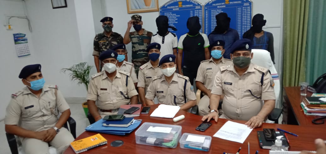 मेदिनीनगर। रेहला थाना क्षेत्र के मुख्य बाजार स्थित मिनी सेंट्रल बैंक में अज्ञात अपराध कर्मियों ने 16 अगस्त को लूट की घटना को अंजाम देकर भागने में सफल हो गए थे। इस मामले में सीएसपी बैंक के संचालक ने थाना में प्राथमिकी दर्ज कराई थी। इस आधार पर पुलिस अधीक्षक चंदन कुमार सिन्हा ने डीएसपी सुरजीत कुमार के नेतृत्व में पुलिस टीम का गठन किया। एसपी के निर्देश के आलोक में डीएसपी सुरजीत कुमार ने छापेमारी अभियान चलाया। पुलिस ने राहुल कुमार पिता विनोद राम ग्राम कुडवा थाना पाटन को गुप्त सूचना के आधार पर गिरफ्तार की। इसके बाद इससे पूछताछ के क्रम में इसके निशानदेही पर पवन शर्मा पिता दशरथ शर्मा ग्राम खरौंघा थाना कांडी गढ़वा ,संजय कुमार चौधरी पिता विमल चौधरी ग्राम भीखही थाना डंडा एवं रवि पासवान पिता इंद्रदेव पासवान ग्राम मेढना दोनों गढ़वा जिला के रहने वाले को गिरफ्तार किया। इन लोगों के पास से बैंक के लूटी हुई राशि 6140 दो मोबाइल, दो मोटरसाइकिल ,दो देसी कट्टा ,दो गोली बरामद किया गया। इस संबंध में पुलिस अधीक्षक चंदन कुमार सिन्हा ने प्रेस वार्ता कर बताया कि इस लूट कांड का मास्टरमाइंड पवन शर्मा है जिसने लोगों को मोटरसाइकिल एवं हथियार उपलब्ध कराया। बैंक से 75000 रुपए लूटी गई थी। जिसमें सबसे ज्यादा राशि पवन शर्मा के पास गया। उसने अपने साथियों को बताया कि इसमें मेरा हिसा ज्यादा होगा क्योंकि हम हथियार व मोटरसाइकिल उपलब्ध कराए हैं । एसपी ने बताया कि इन लुटेरो को बैंक लूटने के बाद अगला निशाना नगर उंटारी के एक जेवर दुकान में लूट की घटना को अंजाम देना था। उन्होंने बताया कि यही गिरोह 28 अक्टूबर 2020 को केतार बैंक में लूट की घटना को अंजाम दिया था। प्रेस वार्ता में डीएसपी सुरजीत कुमार ,इंस्पेक्टर राजबल्लभ पासवान ,थाना प्रभारी नेमधारी रजक ,गौतम कुमार समेत अन्य मौजूद थे।