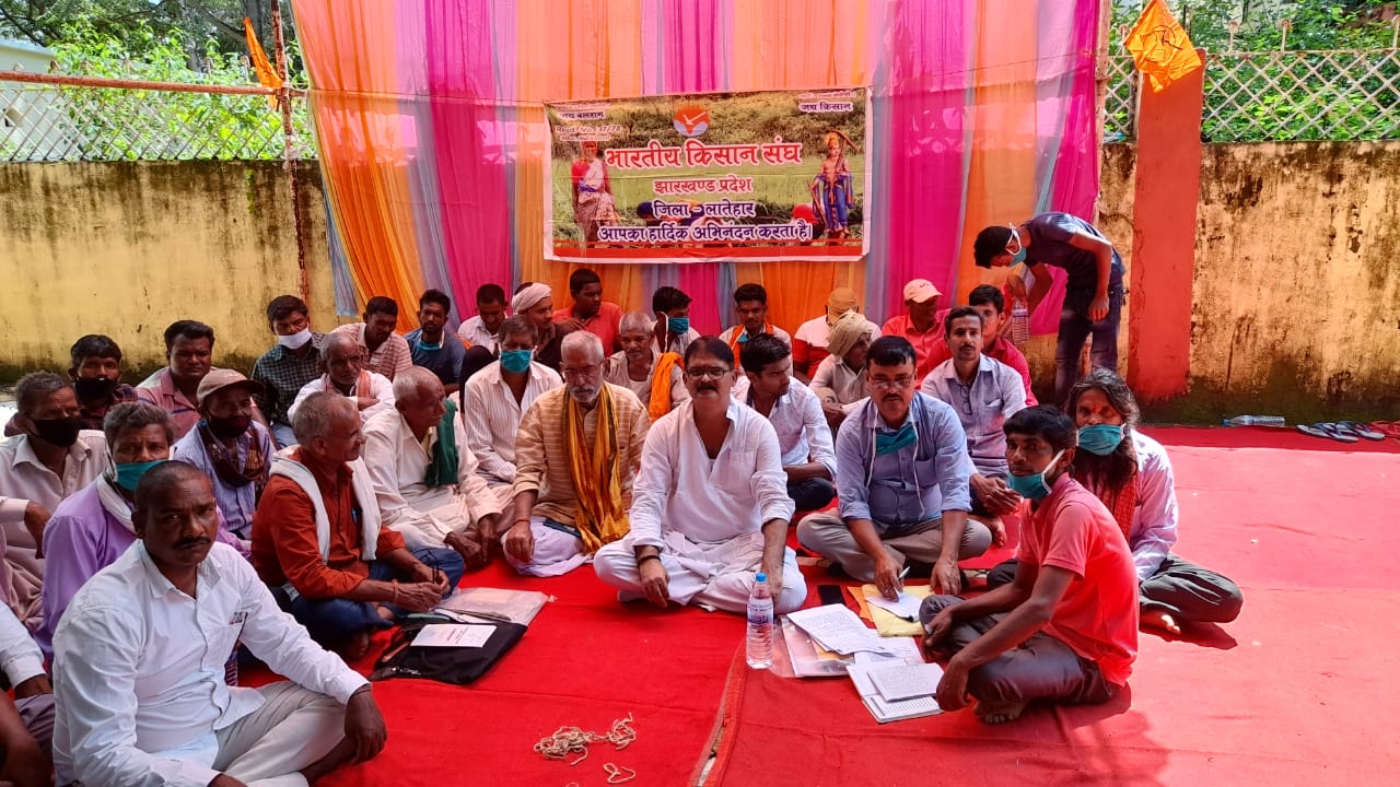 रांची। पूर्व निर्धारित कार्यक्रम के तहत बुधवार को भारतीय किसान संघ के बैनर तले जोरदार धरना-प्रदर्शन किया गया। इस दौरान रांची, लातेहार, गढ़वा, बोकारो, रामगढ़, हज़ारीबाग़, कोडरमा, सरायकेला-खरसावां, खूंटी, देवघर, गोड्डा समेत पूरे झारखण्ड के सभी जिला मुख्यालयों में कार्यक्रम किया गया। इस मौके पर भारतीय किसान संघ के प्रदेश प्रवक्ता सह भारतीय एग्रो इकोनॉमिक्स रिसर्च के प्रदेश अध्यक्ष प्रकाश कुमार सिंह ने भी लोगों को सम्बोधित कर हजारीबाग और रामगढ़ जिले के उपायुक्तों को ज्ञापन सौंपा। मौके पर किसान संघ के पदधारियों ने पीएम के नाम सभी जिलों के उपायुक्तों को एक ज्ञापन भी सौंपा। जिसके माध्यम से किसानों की मांगों पर अविलम्ब विचार करने की मांगें की गई हैं। इसी क्रम में लातेहार जिला मुख्यालय समाहरणालय में जिला भारतीय किसान संघ ने राष्ट्रव्यापी धरना देकर 4 सूत्री मांग उपायुक्त लातेहार के द्वारा देश के प्रधानमंत्री को पत्र सौंपा गया। 1. जब न्यूनतम समर्थन मूल्य स्वीकार किया और मंडी के भाव से कम रहे क्या किसान को लागत मिलनी है। 2. कृषि उत्पादों का मूल नियंत्रण सदा ही रहा है। इस कारण स्वतंत्र बाजार व्यवस्था विकसित नहीं हो सकी और अब कृषि आदान तो महंगे होते जा रहे हैं, परंतु न्यूनतम समर्थन मूल्य बहुत पीछे है। 3. किसानों को अदान पूर्ति करता उनकी उपज का व्यापार करने वाले तथा उद्योग चलाने वाले सभी को फल फूल रहे हैं। संपन्न हो रहे हैं। फिर स्वयं किसान क्यों कर्जदार न्यूनतम समर्थन मूल्य से सौक्डो रुपये का अतंर है। एक-दो प्रांत के न्यूनतम समर्थन मूल्य का लाभ शेष देश भर का किसान वंचित रहे तो कोई तो समाधान जरूरी हो सकता है। 4. सभी किसान कृषि वैज्ञानिक संस्था उत्पादन बढ़ाने में लगे हैं क्या अब किसान की आय बढ़ाने का लागत घटाने पर प्राथमिकता से काम नहीं होना चाहिए। इस दौरान प्रदेश कार्यकारी अध्यक्ष जय कुमार सिंह ने धरना पर बैठे लोगों को सम्बोधित करते हुए किसानों की समस्याओं को रखा। साथ ही कहा कि लातेहार जिले में धान का जो क्रय हुआ, उससे किसानों का कोई लाभ नहीं हुआ। किसान के लिए सभी लोग प्रयास कर रहे हैं, फिर भी किसान कर्जदार बनते जा रहे हैं। जिलाध्यक्ष संजय सिंह ने कहा कि किसान परेशान रहेगा, तो संसार में तूफान रहेगा। किसान अन्नदाता होते हैं। मगर आज किसान बहुत ही समस्याओं से ग्रस्त हैं। धरना के माध्यम से देश के प्रधानमंत्री को किसानों की समस्याओं को हमलोग रखे हैं। आशा ही नहीं बल्कि पूर्ण विश्वास है कि समाधान होगा। बैठक में प्रदेश कार्यकारिणी अध्यक्ष अजय कुमार सिंह, जिलाध्यक्ष संजय सिंह, प्रखंड अध्यक्ष सरजु प्रसाद साहू, सरजू प्रसाद, बबन मांझी, पंचम सिंह, प्रमोद सिंहज़ संदीप कुमार, जितेंद्र सिंह, धनंज
