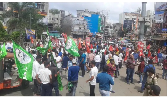 रांची।केन्द्र सरकार के किसान कानूनों के विरोध में पूरे देश भर में विरोध जारी है, जिसे लेकर आज भारत बंद किया गया। अखिल भारतीय किसान संघर्ष मोर्चा द्वारा घोषित इस भारत बंद का असर रांची समेत कई अन्य जिलों में भी देखा जा रहा है। व्यवासायिक प्रतिष्ठान बंद हैं। लंबी दूरी की बसों का परिचालन नहीं हुआ। शहर में सिटी बसें भी आम दिनों के तुलना में बहुत कम चल रही हैं। ऑटो परिचालन भी काफी कम है। सरकारी कार्यालयों में भी आम दिनों की तुलना में उपस्थिति कम दिख रही है। इन सबके अलावा देशव्यापी बंद समर्थक रांची में सड़क पर उतर गए हैं। शहर के विभिन्न एंट्री प्वाइंट को बंद समर्थकों ने जाम करने का प्रयास किया। बंद के मद्देनजर प्रशासन सुरक्षा व्यवस्था के व्यापक प्रबंधन किए हैं। शहर के अधिकांश स्कूल बंद रहे। स्कूलों में ऑफलाइन पढ़ाई नहीं हो रही है। राजधानी रांची के अलावा सिमडेगा, देवघर, जमशेदपुर, धनबाद, बोकारो समेत अन्य राज्यों में भी भारत बंद का व्यापक असर है। सिमडेगा में महागठबंधन ने सड़कों पर उतर कर सड़क जाम कर दी है। जिससे सड़क के दोनो तरफ वाहनों की लंबी कतारें लग गई है। वहीं अन्य जिलों पर भी समर्थकों ने सड़क जाम कर दिया है। सडक जाम होने से कई दूसरे शहरों से आने वाली यात्री बस सहित कई गाडियां फंस गयी है। सड़क जाम होने से लोग परेशान हैं।