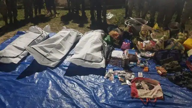 रायपुर। छत्तीसगढ़ के दंतेवाड़ा जिले में रविवार को सुरक्षाबलों के साथ हुई मुठभेड़ में जवानों ने तीन नक्सलियों को मार गिराया है। तीनों महिला नक्सलियों पर 5-5 लाख रुपए का इनाम घोषित था। दंतेवाड़ा के पुलिस अधीक्षक अभिषेक पल्लव ने बताया कि यह मुठभेड़ रविवार शाम करीब छह बजे कातेकल्याण पुलिस थाने के अंतर्गत अदवाल और कुंजेरात गांवों के बीच जंगल में तब हुई जब डिस्ट्रिक्ट रिजर्व गार्ड (डीआरजी) के जवान तलाशी अभियान चला रहे थे। तभी नक्सलियों ने फायरिंग शुरू कर दी। कई घंटे की मुठभेड़ के बाद जवानों को भारी पड़ता देख अन्य नक्सली जंगल का फायदा उठाकर भाग गए। एसपी ने बताया कि मुठभेड़ के बाद घटनास्थल की सर्चिंग करने पर तीन महिला नक्सलियों के शव बरामद किए गए हैं। उन्होंने बताया कि मुठभेड़ के बाद घटनास्थल से तीन हार्डकोर महिला नक्सलियों के शव मिले हैं। पल्लव ने बताया कि मारी गई महिला नक्सलियों की पहचान राजे मुचकी, गीता मरकाम और ज्योति उर्फ भीमे नुप्पो के तौर पर की गई है। तीनों कातेकल्याण एरिया कमेटी ऑफ माओइस्ट की सक्रिय सदस्य थीं। उन्होंने बताया कि तीनों पर छत्तीसगढ़ शासन द्वारा पांच-पांच लाख रुपये का इनाम घोषित था। पुलिस अधीक्षक ने बताया कि घटना स्थल से एक 12 बोर की बंदूक, दो देसी रिवाल्वर, एक मज्जल लोडिंग गन, दो इम्प्रोवाइज्ड एक्सप्लोसिव डिवाइस (आईईडी), तार, दवाएं, माओवादी साहित्य और दैनिक इस्तेमाल की अन्य वस्तुएं जब्त की गई हैं।