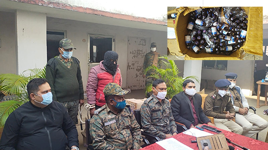 दुमका। प्रतिबंधित दवा कफ सिरप और एक बोरा नशीली दवा अफ्राजोल टेबलेट बरामद करते हुए मुफस्सिल थाना पुलिस एक को गिरफ्तार कर जेल भेज दी है। गिरफ्तार आरापी मुफस्सिल थाना क्षेत्र के हरणाकुंडी तेतरपाडा निवासी राजेश राय है। राजेश राय खेल संघ से जुड़ा है। इस बावत मंगलवार को प्रेसवार्ता कर मुफस्सिल थाना परिसर में एसडीपीओ, सदर मो नूर मुस्तफा अंसारी ने बताया कि एसपी अंबर लकड़ा को गुप्त सूचना मिली थी कि मुफस्सिल थाना अंतर्गत हरणाकुंडी के तेतरपाडा में राजेश राय के घर में भारी मात्रा में कोरेक्स एवं अन्य प्रतिबंधित दवाएं छिपाकर रखा गया है। सूचना का सत्यापन एवं आवश्यक कार्रवाई के लिए एसडीपीओ, सदर के नेतृत्व में एक टीम का गठन किया गया। तलाशी के क्रम में राजेश कुमार राय के घर के बरामदे के कोने से प्लास्टिक से छिपाकर बोरा एवं कार्टून में बंद भारी मात्रा में कोरेक्स, आॅनरेक्स डनारेक्स, कॉडेक्स आदि बरामद किया गया। इस संबंध में जब राजेश राय से पूछताछ की गई तो राजेश संतोषजनक जबाव नहीं दिया और नहीं कोई कागजात ही उपलब्ध करा सका। पुलिस को अनुसंधान के क्रम में पता चला कि इन दवाओं को पड़ोस में रहने वाले सूरज गुप्ता और उसकी पत्नी जुली कुमारी ने अगस्त माह में घर पर रखने को दिया था। पुलिस करीब 4500 कफ सिरप का शीशी और नशे का दवा बरामद की है। आरोपी सुरज गुप्ता नगर थाना अंतर्गत पटना से रांची होते हुए ट्रांसपोर्ट के माध्यम से प्रतिबंधित दवा की बड़ी खेप बरामद की थी। मामले में चार नामजद आरोपियों के खिलाफ मामला दर्ज करते हुए सूरज गुप्ता समेत दो को गिरफ्तार कर जेल भेज चुकी है। पांच दिन पूर्व ही सुरज जमानत पर जेल से बाहर आया था। जेल से बाहर आने के बाद सुरज ने एक बोरा कफ सिरप राजेश के घर से वापस भी लाया था। हरणाकुंडी निवासी सुरज कुमार का नगर थाना रोड में मेडिकल की दुकान है। इसी दुकान की आड़ में वह बाहर से प्रतिबंधित कफ सिरप मंगाकर जिला के विभिन्न प्रखंडों में भेजता है। इस काम में सुरज की पत्नी जुली कूमारी उसका साथ देती है। पुलिस सुरज गुप्ता और उसकी पत्नी जुली कुमारी की तलाश में जुटी है। इस संबंध में राजेश राय की पत्नी पल्लवी शर्मा ने पुलिस को बताया कि अगस्त माह में सुरज की पत्नी जुली कुमारी ने दवा रखने को दी और कहा कि इसके बदले वह हर माह छह सौ रुपया देगी। जबकि पुलिस का कहना है कि इस काम में पुरा परिवार लगा हुआ है। सुरज दवा राजेश के मकान पर रखता और मौका मिलने पर उसे बाहर भेजता था। प्रेसवार्ता में ड्रग इंस्पेक्टर विकास कुमार ने कहा कि राजेश के घर से काफी मात्रा में प्रतिबंधित दवा मिला है। जिसकी जांच की जा रही है। मामले में पुलिस भादवी की धारा 420/120 बी/34 एवं एनडीपीएस एक्ट-18 समेत अन्य सुसंगत धाराओं के तहत मामला दर्ज कर आरोपी क