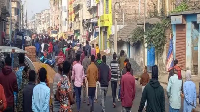 टीम एबीएन, साहिबगंज। पलामू के नावा बाजार थाने के पूर्व थाना प्रभारी लालजी यादव की संदेहास्पद स्थिति में मौत का मामला शांत होने का नाम नहीं ले रहा है। पलामू में शव का पोस्टमार्टम होने के बाद गुरुवार की सुबह परिजन पार्थिव शरीर को लेकर साहिबगंज पहुंचे। शव के वहां पहुंचते ही परिजन और आक्रोशित स्थानीय लोगों ने साहिबगंज के साक्षरता चौक पर पहुंचकर एनएच-80 को जाम कर दिया और सरकार के खिलाफ विरोध प्रदर्शन किया। इसके साथ ही आक्रोशित लोग शहर में घूम-घूम कर दुकान को भी बंद करवा रहे हैं। परिजनों का कहना है कि दारोगा लालजी यादव ने आत्महत्या नहीं की है। उनकी हत्या कर दी गई है। पलामू एसपी और डीटीओ उनकी मौत के जिम्मेदार हैं। उन्होंने सरकार से मांग की है कि पूरे मामले की सीबीआई जांच कराई जाए और दोषियों के खिलाफ कार्रवाई करें। बता दें कि दारोगा लालजी यादव के दो संतान है और पत्नी 7 महीने की गर्भवती है। विरोध प्रदर्शन के बाद मुनीलाल श्मशान घाट में अंतिम संस्कार किया जाएगा।