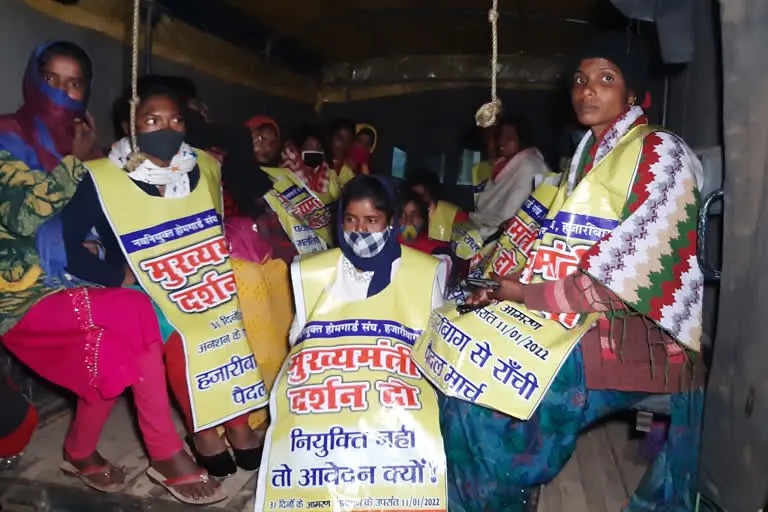 एबीएन डेस्क। होमगार्ड अभ्यर्थियों का आंदोलन इन दिनों चरम सीमा पर है। हजारीबाग से होमगार्ड सफल अभ्यर्थी मुख्यमंत्री से मुलाकात करने के लिए 2 दिन पहले पैदल ही निकल पड़े थे। जिन्हें गुरुवार को ओरमांझी थाना के निकट टोल प्लाजा पर रोक दिया गया। अंत में पुलिस ने उन्हें डिटेन कर हजारीबाग मुफस्सिल थाना लाया। जहां विधायक अंबा प्रसाद उनसे मुलाकात करने पहुंची और उन्हें विश्वास दिलाया कि वह उनके साथ हैं सरकार से न्याय मिलेगा। सफल होमगार्ड अभ्यर्थी हजारीबाग में इन दिनों आंदोलनरत हैं। पिछले 32 दिनों से ये अपनी मांग को लेकर हजारीबाग समाहरणालय के सामने धरना पर हैं। 2 दिन पहले होमगार्ड अभ्यर्थी मुख्यमंत्री से मुलाकात करने के लिए हजारीबाग से पैदल मार्च पर निकले थे। जिन्होंने हजारीबाग में ऐलान किया था कि जब तक मुख्यमंत्री से मुलाकात नहीं होगी, उन्हें अपनी बातों को नहीं बताएंगे वापस हजारीबाग नहीं आएंगे। लेकिन उन्हें गुरुवार को ओरमांझी थाना अंतर्गत टोल प्लाजा के पास रोक दिया गया और कहा गया कि अब आप वापस लौटें। लेकिन अभ्यर्थियों का कहना था कि वापस नहीं लौटेंगे। ऐसे में पुलिस ने उन्हें डिटेन कर हजारीबाग मुफस्सिल थाना लाया। जहां उनसे मुलाकात करने बड़कागांव विधायक अंबा प्रसाद पहुंची और विश्वास दिलाया कि उन्हें न्याय मिलेगा यह सरकार छात्रों के साथ है।