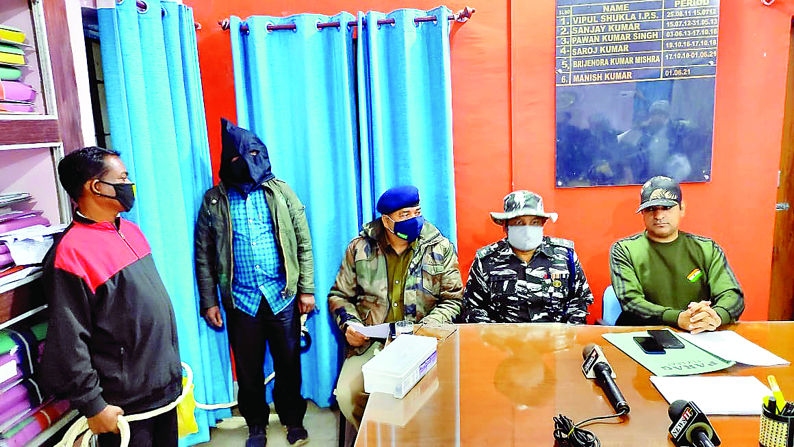 गुमला। गुमला पुलिस के साथ हुए कई मुठभेडों में शामिल भाकपा माओवादी संगठन के सक्रिय सदस्य पालकोट थाना क्षेत्र के कोटराकोना निवासी अमन नगेशिया उर्फ मनोज नगेशिया को गुप्त सूचना पर बिलिंगबीरा से गुमला पुलिस ने गिरफ्तार करने में सफलता प्राप्त की है। पूरे मामला की शुक्रवार को अपने कार्यालय कक्ष में प्रेस वार्ता कर खुलासा करते हुए अभियान एसपी मनीष कुमार ने बताया कि पुलिस अधीक्षक ऐहतेशाम वकारीव को गुप्त सूचना मिली थी कि भाकपा माओवादी का सक्रिय सदस्य अमन नगेशिया उर्फ मनोज नगेशिया अपने घर कोटराकोना आया हुआ है। सूचना के बाद एसपी के द्वारा स्पेशल छापामारी टीम का गठन किया गया। जिसमें गुमला पुलिस के पदाधिकारी व सीआरपीएफ 218 बटालियन के पदाधिकारी व जवान शामिल थे। गठित टीम के द्वारा अमन नगेशिया के घर में 13 जनवरी को छापामारी की गई। छापामारी के क्रम में पुलिस को देखकर घर से एक युवक भागने लगा। जिसे टीम के जवानों ने खदेड़ कर पकड़ा। गिरफ्तारी के बाद उसकी तलाशी ली गई तो कमर से एक देशी कट्ठा व पेंट की जेब से एक जिंदा गोली बरामद किया गया। वहीं पिस्टल खोलने पर उसके चेंबर से भी एक जिंदा गोली मिली। पुलिस टीम द्वारा कड़ाई से पूछे जाने पर उसने अपना नाम अमन नगेशिया उर्फ मनोज नगेशिया बताया। वहीं पुछताछ में अमन नगेशिया ने बताया कि वर्ष 2018 में पुलिस व माओवादियों के बीच हुए मुठभेड में उसके पैर में गोली लगी थी। वहीं माओवादी के अंतिम जी व अशीष दा की हत्या से संबंधित घटना में भी शामिल था। हाल के दिनों में माओवादी के रीजनल सदस्य बुद्धेश्वर उरांव के साथ हुए मुठभेड में भी वह वहीं उपस्थित था। वहीं कुरूमगढ़ थाना के नवनिर्मित भवन को उड़ाने में भी वह शामिल था। पुलिस ने उसकी निशानदेही पर उसके घर से एक पिटठु बैग के अंदर रखे दो पैकेट विस्फोटक व दस पीस नन इलेक्ट्रोनिक डेटोनेटर बरामद किया।