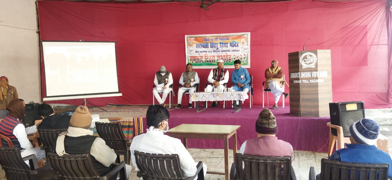 टीम एबीएन, हजारीबाग। विद्या भारती अखिल भारतीय शिक्षा संस्थान के तत्वावधान में अखिल भारतीय संस्कृति ज्ञान परीक्षा 2021-22 का आयोजन आज दिनांक 30 जनवरी 2022 दिन रविवार को प्रातः 9:30 से सरस्वती शिशु विद्या मंदिर, कुम्हाटोली, हजारीबाग में हुआ। उक्त परीक्षा के प्रवेशिका मध्यमा एवं उत्तमा में विद्यालय के आचार्य बंधु भगिनी सम्मिलित हुए। परीक्षा के प्रवेशिका में 6 मध्यमा में 8 एवं उत्तमा में 9 आचार्य बंधु- सम्मिलित हुए इस प्रकार कुल प्रतिभागियों की संख्या 23 रही। मौके पर हजारीबाग विभाग के विभाग निरीक्षक ओम प्रकाश सिन्हा ने परीक्षा का अवलोकन भी किया परीक्षा के सफलतापूर्वक संचालन में विद्यालय के प्राचार्य दिनेश कुमार मिश्र, परीक्षा प्रभारी सहदेव कुमार राणा, आचार्य प्रदीप कुमार सिन्हा, रघुवंश मिश्रा, अनिल कुमार, जयप्रकाश महतो, अमरनाथ झा, प्रभात कुमार सिन्हा एवं नरेंद्र कुमार सिन्हा का एवं आचार्य बंधु भगिनी का सहयोग रहा।