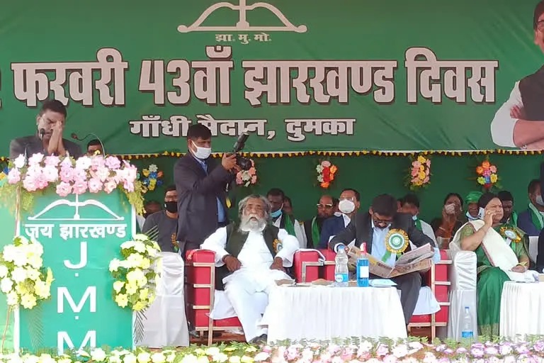 टीम एबीएन, रांची। झारखंड मुक्ति मोर्चा का 43 वां स्थापना दिवस समारोह बुधवार को दुमका में मनाया जा रहा है। इसके लिए जेएमएम सुप्रीमो शिबू सोरेन और सीएम हेमंत सोरेने एक फरवरी मंगलवार को ही दुमका दौरे पर पहुंच गए थे। दुमका के गांधी मैदान में स्थापना दिवस समारोह की शुरुआत हो गई है। झामुमो सुप्रीमो शिबू सोरेन और राज्य के मुख्यमंत्री हेमंत सोरेन ने पार्टी का झंडा फहराकर कार्यक्रम की शुरुआत कराई। इस दौरान सीएम और गुरुजी ने कहा कि कोरोना की वजह से कार्यक्रम संक्षिप्त रूप से आयोजित किया जा रहा है। मंच पर विधायक बसंत सोरेन, विधायक सीता सोरेन, विधायक नलिन सोरेन के साथ पार्टी के नेता सुप्रियो भट्टाचार्य और विनोद पांडे मौजूद हैं।