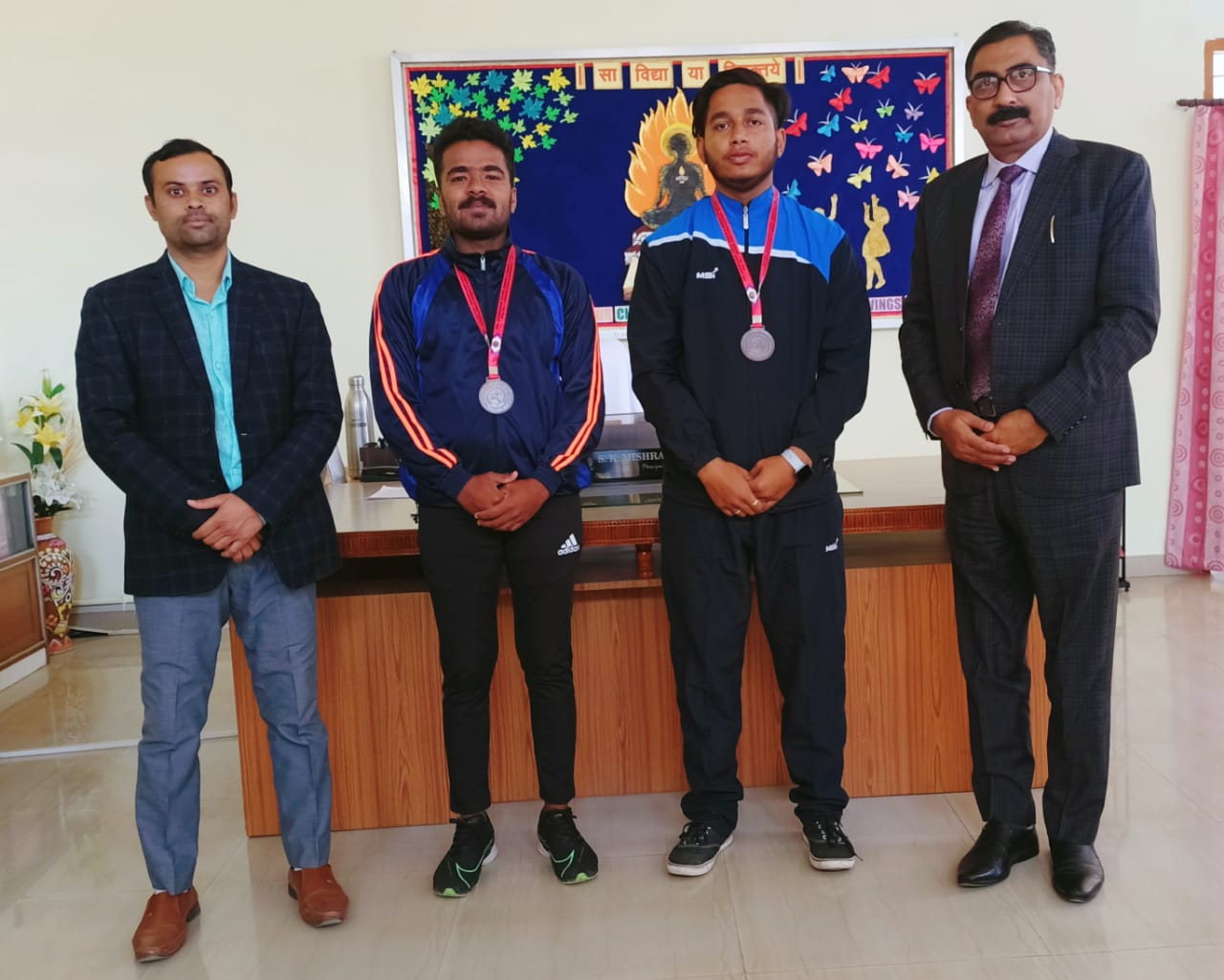 टीम एबीएन, रांची। झारखंड जूडो संघ एवं गिरिडीह जिला जूडो संघ के संयुक्त तत्वावधान में नगर भवन गिरिडीह में आयोजित दो दिवसीय राज्य स्तरीय जूडो प्रतियोगिता में रांची जिला की ओर से खेलते हुए एसआर डीएवी पब्लिक स्कूल, पुंदाग के खिलाड़ियों ने शानदार प्रदर्शन करते हुए 2 पदकों पर अपना कब्जा जमाया। विद्यालय के 12वीं के छात्र प्रिंस कुमार ने जूनियर कैटेगरी में 60-66 किलोग्राम तथा आदित्य कुमार ने 80-90 किलोग्राम भार वर्ग में शानदार प्रदर्शन करते हुए कांस्य पदक हासिल किया। खिलाड़ियों के शानदार प्रदर्शन पर विद्यालय के प्राचार्य एसके मिश्रा ने खिलाड़ियों को पदक प्रदान का उन्हें सम्मानित किया तथा उनके उज्ज्वल भविष्य की कामना की। साथ ही उन्होंने अपने आशीर्वचन में कहा कि जीवन में खेलकूद का विशेष महत्व है। बच्चे पढ़ाई के साथ-साथ खेलकूद में भी अपना भविष्य सवार कर देश का नाम रौशन कर सकते हैं। खेलकूद के क्षेत्र में भी असीम संभावनाएं हैं, जो उन्हें अंतर्राष्ट्रीय स्तर पर ख्याति दिला सकते हैं।विद्यार्थियों के इस शानदार उपलब्धि पर विद्यालय के खेल शिक्षक आशीष जायसवाल सहित सभी शिक्षक एवं शिक्षिकाओं ने भी विजेताओं को बधाई दी।