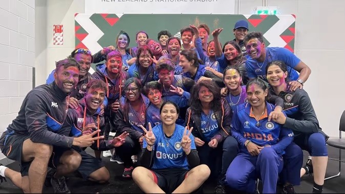 एबीएन स्पोर्ट्स डेस्क। महिला विश्व कप में भारतीय टीम का प्रतिनिधित्व कर रही खिलाड़ियों ने भी जमकर होली का मजा लिया। टीम इंडिया की सभी खिलाड़ियों ने मस्ती की, लेकिन स्नेह राणा इन सब चीजों से दूर रहीं। बीसीसीआई ने होली खेलने के बाद महिला टीम की एक फोटो भी शेयर की है, जिसमें सभी खिलाड़ी रंग-बिरंगी दिख रही हैं, लेकिन स्नेह राणा के शरीर में गुलाल तक नहीं है। हालांकि, स्नेह ने क्यों होली न खेलने का फैसला किया इसकी वजह नहीं पता चल पाई है। भारतीय टीम का अगला मुकाबला ऑस्ट्रेलिया के साथ है। इस मैच में भारत के लिए जीत बहुत जरूरी है, लेकिन खिलाड़ियों ने मैच से पहले होली में मस्ती करने का मौका नहीं छोड़ा। पिछले विश्व कप में भारत ने कंगारू टीम के खिलाफ ऐतिहासिक जीत दर्ज की थी। इस मैच में भी टीम इंडिया अपने पुराने प्रदर्शन को दोहराना चाहेगी। महिला विश्व कप में भारत की मुश्किलें बढ़ी : महिला विश्व कप में भारत ने चार में से दो मैच जीते हैं, जबकि दो में उसे हार का सामना करना पड़ा है। भारत का अगला मैच शनिवार को ऑस्ट्रेलिया कि एखिलाफ है। इस मैच में टीम इंडिया के लिए जीत बहुत जरूरी है। अगर भारतीय टीम को हार का सामना करना पड़ता है, तो उसके सेमीफाइनल में पहुंचने की उम्मीदें कमजोर पड़ सकती हैं।