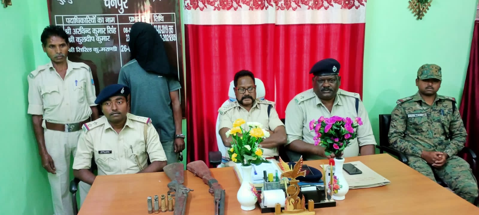 टीम एबीएन, चैनपुर (गुमला)। अवैध हथियार रखने के आरोप में डुमरी थाना पुलिस ने एक व्यक्ति को गिरफ्तार कर जेल भेज दिया। चैनपुर अनुमंडल पुलिस पदाधिकारी सिरिल कुमार मरांडी ने अपने कार्यालय में प्रेस कॉन्फ्रेंस कर जानकारी देते हुए बताया कि डुमरी पुलिस को गुप्त सूचना मिली थी कि डुमरी प्रखंड के खेतली पंचायत अंतर्गत मदरिया गांव निवासी शशिभूषण एक्का पिता स्व नोवेल एक्का अपने घर में देसी बंदूक रखा है। जिसका उपयोग वह लोगों को डराने धमकाने में कर रहा है। गुप्त सूचना के आधार पर डुमरी थाना प्रभारी मनीष कुमार के नेतृत्व में छापेमारी टीम का गठन किया गया गुरुवार को मदरिया गांव स्थित उसके घर में छापेमारी कर अवैध हथियार जिसमे 12 बोर का एक देसी एक नाली बंदूक, 12 बोर का एक देसी भरठुवा बंदूक, 12 बोर का एक जिंदा कारतूस वह 12 बोर का सात खाली कारतूस के साथ अभियुक्त शशि भूषण का को उसके घर से गिरफ्तार किया गया। शशि भूषण एक्का ने अपने अपराध स्यूकृत बयान में में अपना अपराध स्वीकार किया है। अनुमंडल पुलिस पदाधिकारी सिरिल मरांडी ने बताया कि शशि भूषण एक्का के उपर कोई भी पुराना अपराधिक मामला दर्ज नहीं है। लोगों को डराने धमकाने के लिए बंदूक रखता था जिसे गिरफ्तार कर जेल भेज दिया गया। छापेमारी टीम में डुमरी थाना प्रभारी मनीष कुमार, देवदत्त कुमार सिंह, पवन तिर्की, सूरज कुमार यादव, निर्मल कुमार महतो सहित डुमरी थाना में पदस्थापित जैप 02 व सैट109 के हवलदार व कर्मी मौजूद थे।