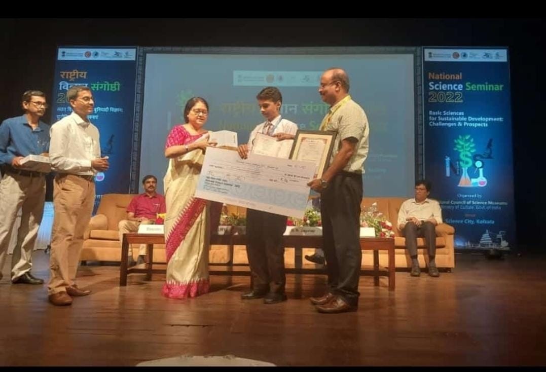 टीम एबीएन, रांची। झारखण्ड राज्य स्तरीय विज्ञान सेमिनार के विजेता शिवा विनायक ने 3-4 नवम्बर को साइंस सिटी कोलकाता में आयोजित राष्ट्रीय सेमिनार में कुल 32 राज्यों/ केन्द्र शासित प्रदेशों के प्रतिभागियों के बीच में अपनी प्रस्तुति देते हुए राष्ट्रीय स्तर पर द्वितीय पुरस्कार प्राप्त कर झारखण्ड का परचम लहराया है। शिवा विनायक संत फ्रांसिस स्कूल देवघर के वर्ग नवमी का छात्र है। 28/10/2022 को रांची में आयोजित राज्य स्तरीय सेमिनार में शिवा ने प्रथम स्थान प्राप्त किया था। उसे राष्ट्रीय स्तर से प्रतिमाह 2000 रुपये की छात्रवृति दी जायेगी। शिवा की उपलब्धि पर डीईओ रांची, कमला सिंह, आकाश कुमार डीएसई रांची और सेमिनार प्रभारी अशोक प्रसाद सिंह ने बधाई और शुभकामनाएं दी हैं।