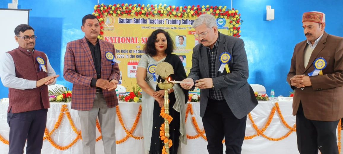 टीम एबीएन, हजारीबाग। गौतम बुद्ध शिक्षक प्रशिक्षण महाविद्यालय में दो दिवसीय राष्ट्रीय सेमिनार का समापन 17 दिसंबर को देश के विभिन्न राज्यों से पहुंचे शिक्षाविदों के विचार मंथन के साथ हो गया। बतौर मुख्य अतिथि दूसरे दिन के सत्र का उद्घाटन करते हुए सेंट्रल यूनिवर्सिटी वर्धा, महाराष्ट्र के डीन प्रोफेसर गोपाल कृष्ण ठाकुर ने कहा कि राष्ट्रीय शिक्षा नीति 2020 में भारतीय ज्ञान की परंपरा समाहित है। इसके काफी समृद्ध दूष्टांत हैं। एनईपी से नौनिहालों को लाभान्वित करने के लिए शिक्षकों को अपनी भूमिका तलाशते हुए ईमानदारी और समर्पित भाव से अपना दायित्व निर्वहन करना होगा। यह शिक्षा नीति सिर्फ धनोपार्जन के लिए नहीं, बल्कि व्यवहार और सदाचार सिखाने के लिए भी है। चूंकि भारत की पुरातन शैझणिक संस्कृति में यही बात समाहित थी। जब विश्व शिक्षा में समृद्ध नहीं था, तब भारतीय ज्ञान शिखर पर था, जिस कारण भारत उस वक्त भी विश्वगुरु था। आज एनईपी 2020 से विश्वगुरु बनने का लक्ष्य है।