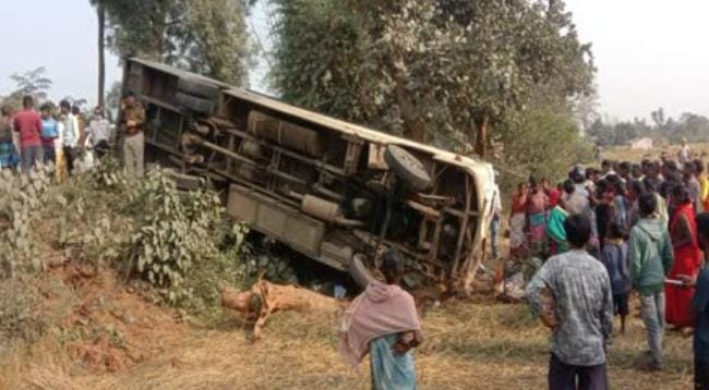 जानकारी के अनुसार लोगों से भरी एक बस आदिवासियों के धार्मिक स्थल रजरप्पा के लुगुबुरू से पूर्वी सिंहभूम लौट रही थी। इस दौरान बस गोला के बरलंगा थाना क्षेत्र के रम्हारु में पलट गयी।