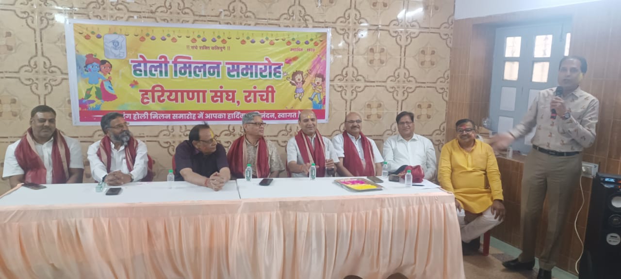 टीम एबीएन, रांची। बंशीधर अडूकिया लेन स्थित मारवाड़ी ब्राह्मण भवन के सभागार में हरियाणा संघ के सानिध्य में होली मिलन समारोह का आयोजन रखा गया।
