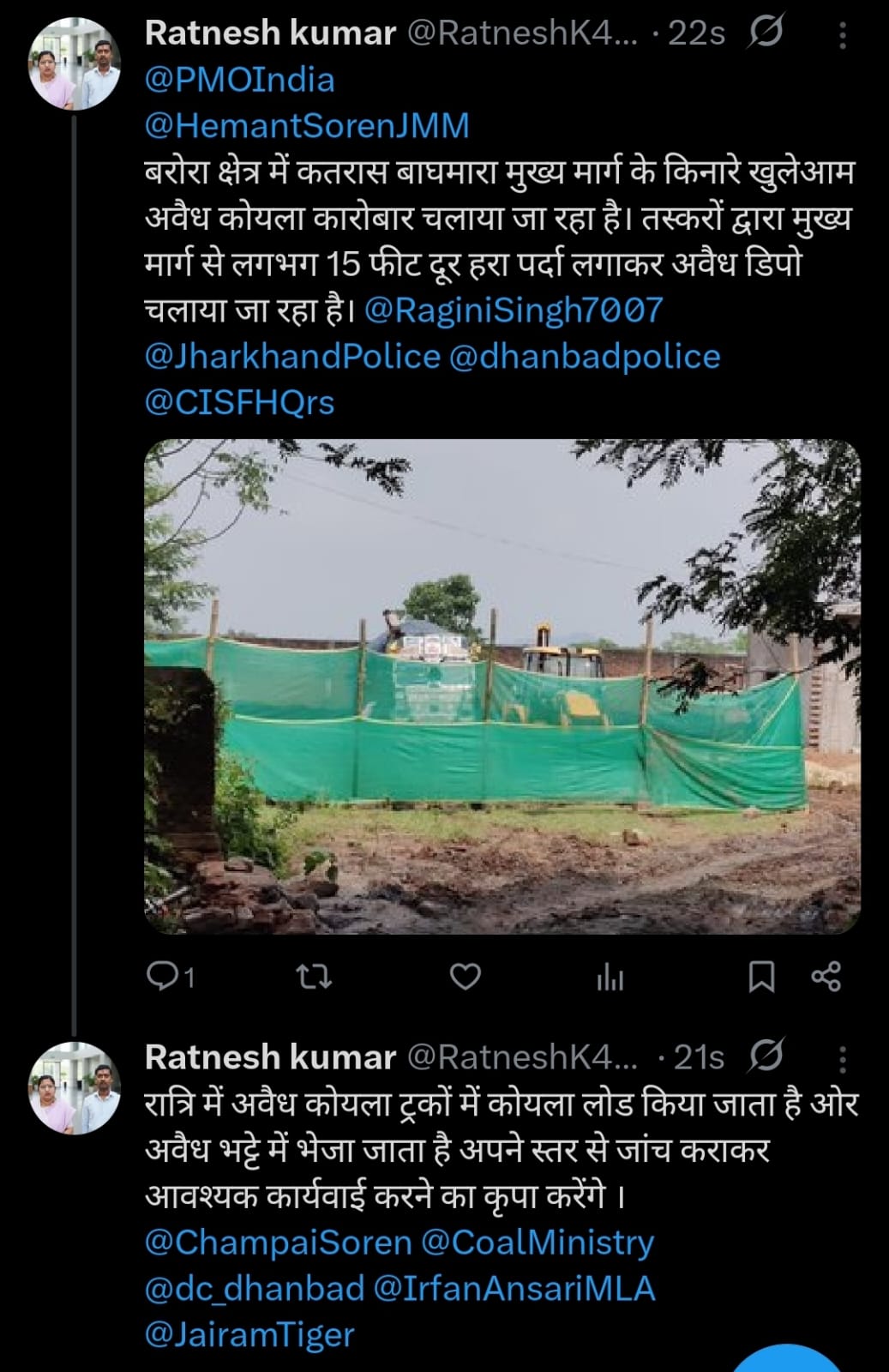 दूसरी ओर कोयला तस्कर कोयला चोरी करने में लगे हुए है जिससे हमारे धनबाद के एसएसपी महोदय का छवि धूमिल करने का प्रयास किया जा रहा है साथ ही बरोरा थाना प्रभारी की भी छवि धूमिल करने का प्रयास किया जा रहा है।