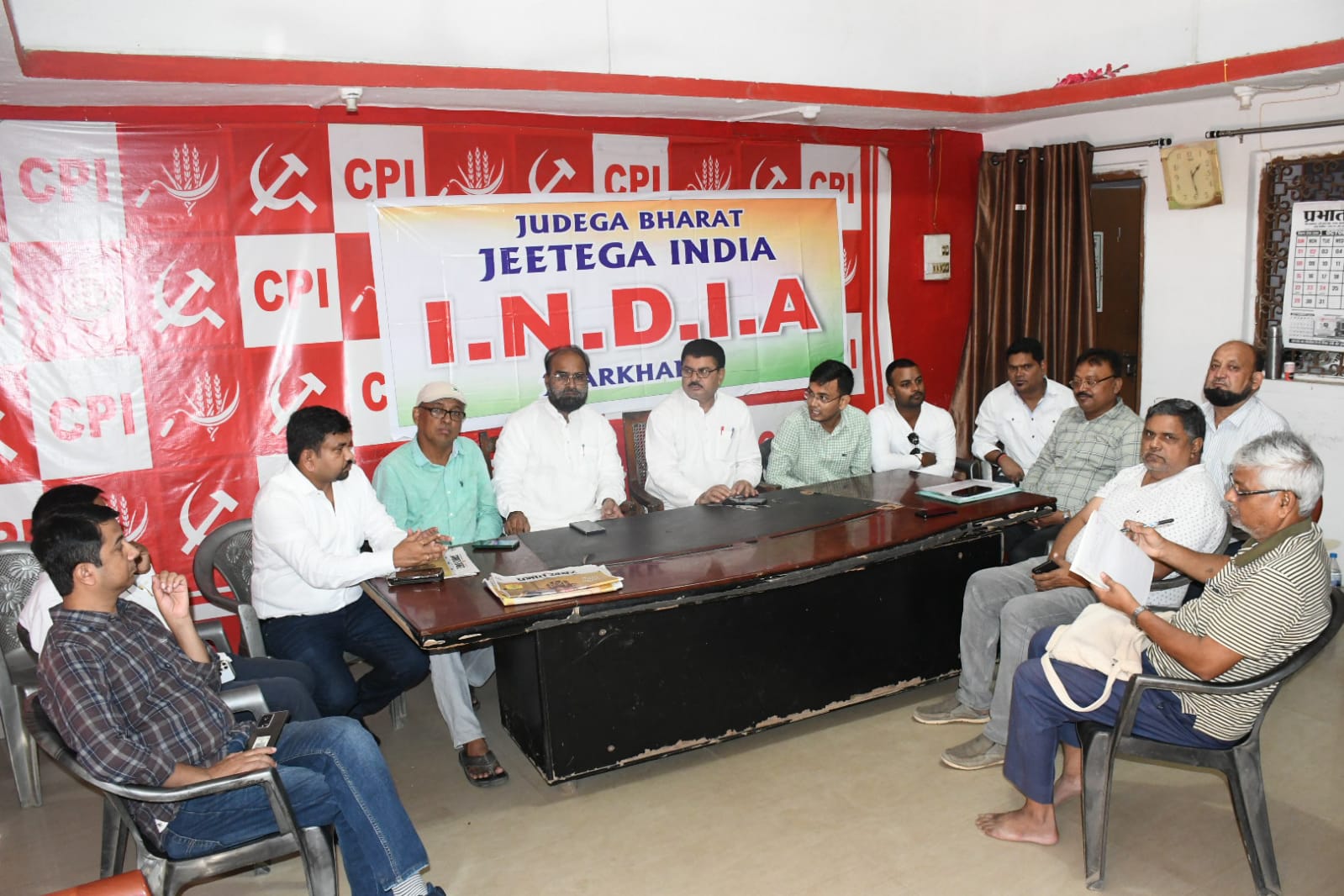 टीम एबीएन, रांची। रांची भारतीय कम्युनिस्ट पार्टी कार्यालय में इंडिया के बैनर तले घटक दलों की बैठक झारखंड मुक्ति मोर्चा के नेता मुस्ताक अंसारी, कांग्रेस के राकेश किरण, भाकपा के अजय कुमार सिंह की अध्यक्षता में हुई। बैठक में मुख्य रूप से भारतीय कम्युनिस्ट पार्टी के प्रदेश सचिव महेंद्र पाठक उपस्थित थे।