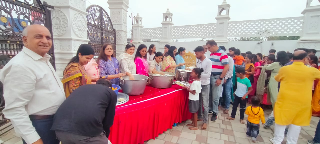 आज संस्था के सदस्यो ने मंदिर में आये हुए पुरोहित के द्वारा पुरे विधि विधान से श्री राज श्यामा जी (राधा-कृष्ण) भगवान एव गुरू महाराज की फोटो पर चंदन वंदन कर अन्नपूर्णा भंडारे का प्रसाद अर्पित कर वहा उपस्थित लगभग 1100 सभी महिलाओं, पुरूष श्रद्धालुओं को चंदन का तिलक करके भजन संकीर्तन कर सभी आये हुए श्रद्धालुओ को भगवान श्री राधा-कृष्ण जी की आरती देकर आज के 204 वें नि:शुल्क श्री कृष्ण प्रणामी अन्नपूर्णा भंडारे का वितरण शुरू किया गया। आज के भंडारे मे संस्था ने भोजन के प्रसाद में विभिन्न प्रकार के लजीज व्यंजनो में पुड़ी, आलू चना टमाटर मिश्रित सब्जी, भेजिटेबल पुलाव, आलु चिप्स का पैकेट, केसरिया जलेबी, केसरिया खीर का वितरण किया।