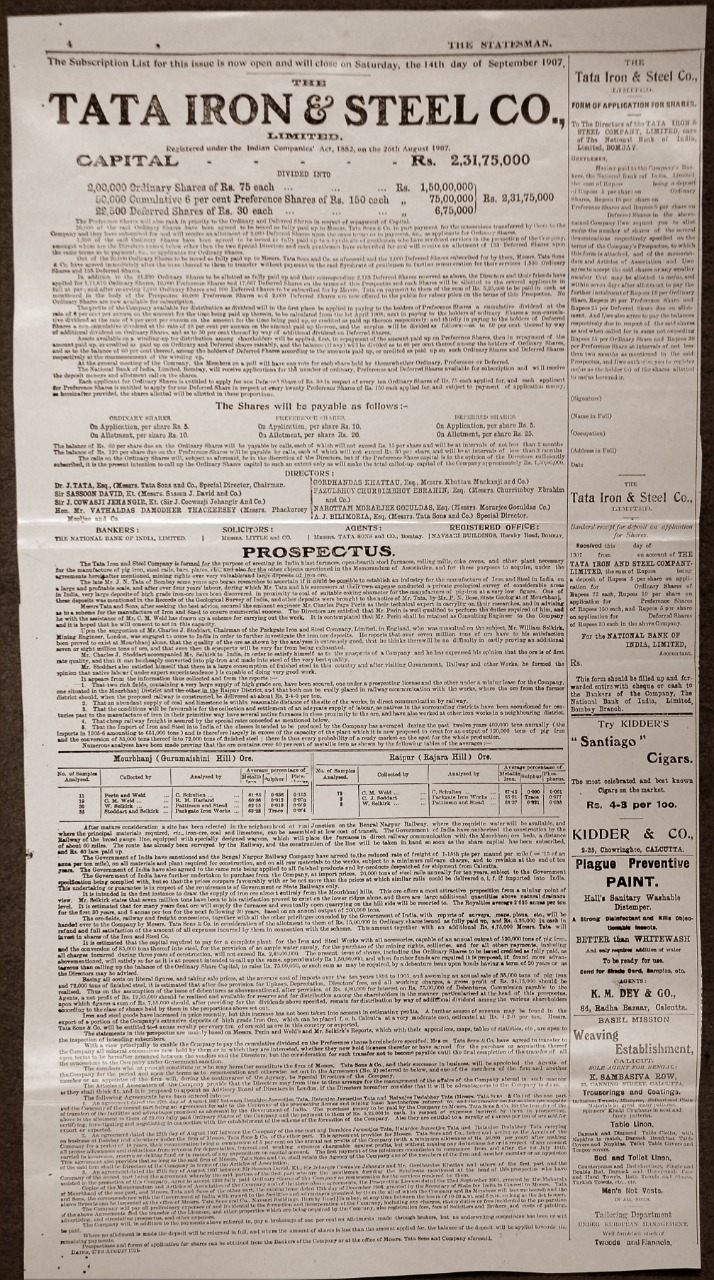 जमशेदपुर। वर्तमान में देश की सबसे बड़ी स्टील कंपनी टाटा स्टील वैश्विक स्तर पर पांच शीर्ष स्टील कंपनियों में शामिल है। द टाटा आयरन एंड स्टील कंपनी लिमिटेड के नाम से यह कंपनी 26 अगस्त 1907 को इंग्लैंड में पंजीकृत कराया गया, हालांकि ब्रिटिश निवेशकों की प्रतिक्रिया बहुत उत्साहजनक नहीं थी। 26 अगस्त 1907 को यह कंपनी भारत में 2,31,75,000 रुपये की मूल पूंजी के साथ पंजीकृत हुई। पूंजी जुटाने का नोटिस जारी किया गया, जिसे जबरदस्त सकारात्मक प्रतिक्रिया मिली और तीन सप्ताह के भीतर पूरी राशि जुटा ली गई। तब वर्तमान में झारखंड के साकची गांव में 1908 में वर्क्स का निर्माण शुरू हुआ जबकि पहली बार स्टील का उत्पादन 16 फरवरी, 1912 को शुरू हुआ। वर्तमान में टाटा स्टील लिमिटेड ग्रुप का सालाना टर्न ओवर 1,57,184 करोड़ रुपये है जबकि इसकी सालाना इस्पात उत्पादन क्षमता 33 मिलियन टन है। आइए जानते हैं कि स्वदेशी कंपनी की रोचक विकास यात्रा के बारे में : 1867 में जमशेदजी नसेरवानजी टाटा ने प्रसिद्ध ब्रिटिश निबंधकार थॉमस कार्लाइल के एक व्याख्यान में हिस्सा लिया जिसमें उन्होंने कहा था, जिस राष्ट्र को लोहे पर नियंत्रण प्राप्त होता है, वह जल्द ही सोने पर भी नियंत्रण प्राप्त कर लेता है। कार्लाइल को शायद ही पता होगा कि उनका यह व्याख्यान भारत को एक आर्थिक पुनरुत्थान की पथप्रदर्शक यात्रा की ओर ले जाएगा और इस प्रकार, उसी क्षण स्टील प्लांट के निर्माण को लेकर जमशेदजी के विचारों को सकारात्मक गतिशक्ति मिला। 1899 में मेजर महोन द्वारा भारत में इस्पात उद्योग को बढ़ावा देने की सिफारिश की एक रिपोर्ट को स्वीकृति मिली, जिसके आधार पर भारत के तत्कालीन वायसराय लॉर्ड कर्जन ने तत्काल कदम उठाते हुए खनिज रियायत नीति को उदार बनाया, जिसने भारत को इसकी पहली एकीत इस्पात कंपनी देने के अपने सपने को साकार करने की दिशा में आगे बढ़ने के लिए जमशेदजी को एक सुनहरा अवसर प्रदान किया। 1902 में पिट्सबर्ग, यूएसए में जमशेदजी की मुलाकात जूलियन कैनेडी, सहलिन ऐंड कंपनी लिमिटेड के प्रमुख जूलियन कैनेडी से हुई। जमशेदजी ने कैनेडी को भारत में एक इस्पात संयंत्र स्थापित करने की अपनी इच्छा के बारे में बताया। कैनेडी ने जमशेदजी को स्थानीय परिस्थितियों, कच्चे माल की उपलब्धता और भारत में बाजार की स्थितियों की गहन वैज्ञानिक जांच करने की सलाह दी। उन्होंने इस प्रोजेक्ट के लिए न्यूयर्क के एक प्रख्यात कंसल्टिंग इंजीनियर चार्ल्स पेज पेरिन की भी सिफारिश की। 24 फरवरी, 1904 में टाटा को भारत के फर्स्ट ग्रेड जियोलजिस्ट प्रमथ नाथ बोस का एक पत्र मिला, जिसमें मयूरभंज राज्य में उच्च गुणवत्ता वाले लौह और झरिया में कोयले की उपलब्धता के बारे में बताया गया था। 1905 में चार्ल्स पेज पेरिन और उनके सहयोगी सी एम वेल्ड ने