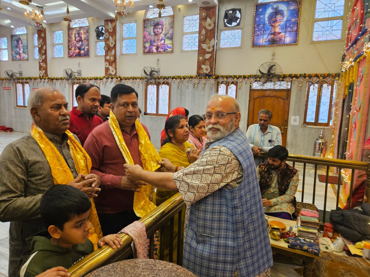 टीम एबीएन, रांची। श्री श्याम मण्डल , रांची द्वारा अग्रसेन पथ स्थित श्री श्याम मन्दिर में आज दिनांक 9 फरवरी 2025 को खाटू नरेश श्याम बाबा को चांदन द्वादशी के पावन अवसर पर प्रातः 10 बजे से 12 बजे तक श्री श्याम प्रभु को खीर चूरमा का भोग अर्पित किया गया। आज के भोग के मुख्य यजमान बालकिशन परसरामपुरिया ने अपने पूरे परिवार के साथ जिनमें माया परसरामपुरिया, केशव परसरामपुरिया, हर्ष परसरामपुरिया, प्रलाश मोदी, संतोष देवी मोदी ने श्याम बाबा को खीर चूरमा का भोग अर्पित किये।
