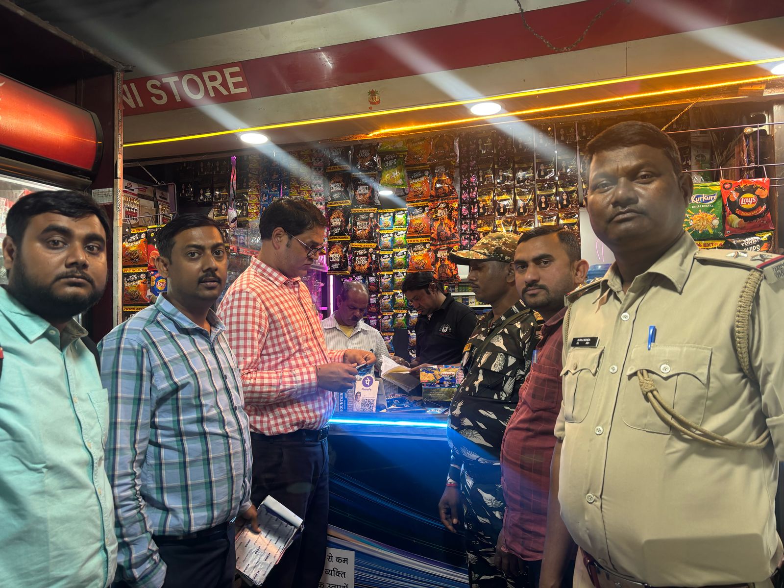 इस जांच अभियान में खाद्य सुरक्षा पदाधिकारी सुबीर रंजन, टोबैको कंट्रोल सेल के डिस्ट्रिक्ट कंसल्टेंट सुशांत कुमार, खाद्य सुरक्षा कार्यालय के कर्मी शिवनंदन यादव एवं सजल श्रीवास्तव साथ ही कोतवाली थाना के पुलिस पदाधिकारी एवं पुलिस बल शामिल थे। प्रशासन की ओर से यह भी कहा गया कि इस तरह के निरीक्षण आगे भी जारी रहेंगे और होली त्यौहार को देखते हुए खाद्य सामग्रियों की जांच भी व्यापक पैमाने पर की जा रही है ताकि किसी प्रकार की मिलावट युक्त सामग्री की बिक्री न हो।