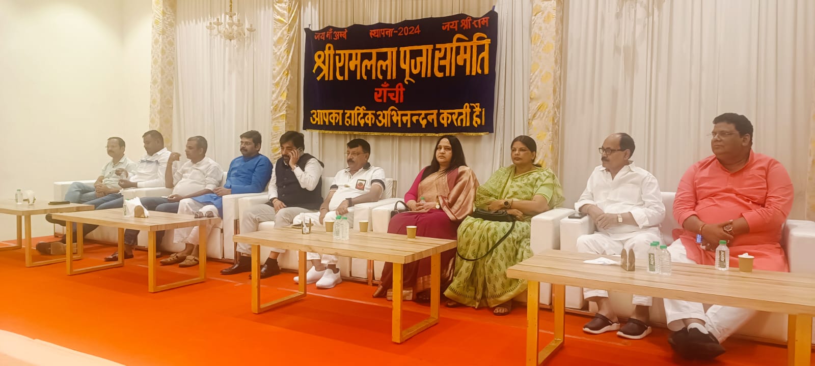 टीम एबीएन, रांची। श्री रामलला पूजा समिति, रांची के सानिध्य में आज मेफेयर बैंक्विट हॉल, धुर्वा में पूजा समिति के पदाधिकारी एवम सदस्यों की एक महत्वपूर्ण बैठक बुलाई गई। उक्त बैठक की अध्यक्षता समिति के अध्यक्ष श्री अशोक चौधरी ने की।