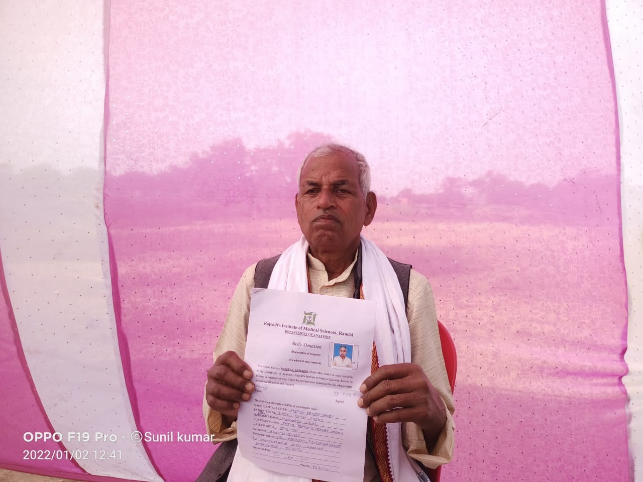 भवनाथपुर। प्रखण्ड के बनसानी पंचायत के रोहिनिया गांव निवासी 80 वर्षीय प्रभु प्रसाद यादव ने मृत्यु के पश्चात अपना शरीर जन सेवा के लिए रांची रिम्स अस्पताल में दान कर भवनाथपुर प्रखण्ड ही नहीं सम्भवतः गढ़वा जिला में पहले व्यक्ति होने का गौरव प्राप्त किया है। उन्होंने बताया कि मेरी शिक्षा गांव में ही तीसरी क्लास तक हुई है। परन्तु मैंने जो अपने दुनियादारी देखी उसमें मानवता के नाते दूसरे मनुष्य को जीवन दान देने से बड़ा कोई भी सुख नहीं है। मैंने वर्ष 2017 में रेडियो के माध्यम से बंगाल के मुख्यमंत्री ज्योति बसु से यह सुना था कि वे मृत्यु के पश्चात अपने अपना शरीर दान करेंगे। यह बात मेरे दिमाग में घर कर गया। मैंने भी पत्नी मानमति देवी व पुत्र श्याम बिहारी यादव की सलाह के बाद सहमति बनाकर वर्ष 2017 में रांची रिम्स में चिकित्सकों के परामर्श से अपनी इच्छा जाहिर की। उन्होंने कहा कि ऐसे कार्य के लिए समाज के लोगों को आगे आना चाहिए।