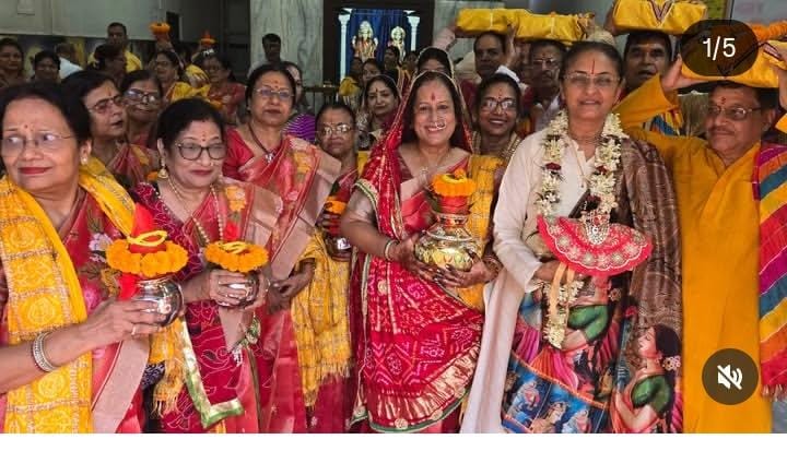 टीम एबीएन, रांची। अखिल भारतीय मारवाड़ी महिला सम्मेलन रांची शाखा के द्वारा अग्रसेन पथ स्थित अग्रसेन भवन में श्रीमद् भागवत ज्ञान सप्ताह यज्ञ का रविवार को शुभारंभ हुआ। इस मौके पर लक्ष्मी नारायण मंदिर के प्रांगण से निकली कलश यात्रा अग्रसेन भवन में आकर संपन्न हुई। शोभा यात्रा में महिलाऐं पारंपरिक वेशभूषा में सिर में कलश धारण कर शामिल हुई और पुरुष पारंपरिक वेशभूषा में शामिल हुए।