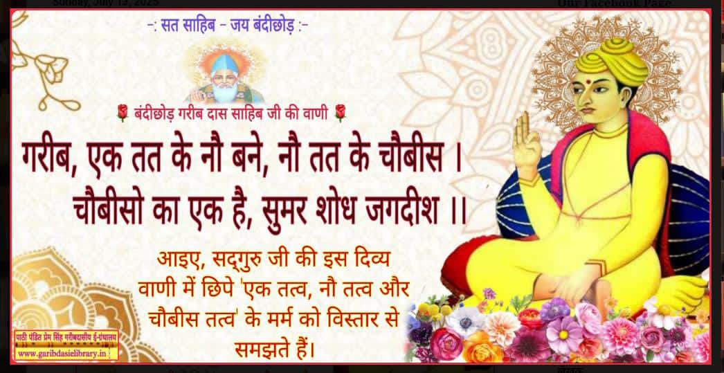 एबीएन सोशल डेस्क। सत्यपुरुष सद्गुरु बंदीछोड़ गरीब दास साहेब जी की वाणी हमें जीवन के गहरे रहस्यों को समझने और आत्मज्ञान की ओर अग्रसर होने का मार्ग दिखाती है। सद्गुरु जी की वाणी की यह साखी आध्यात्मिक सत्य को उजागर करता है:-
