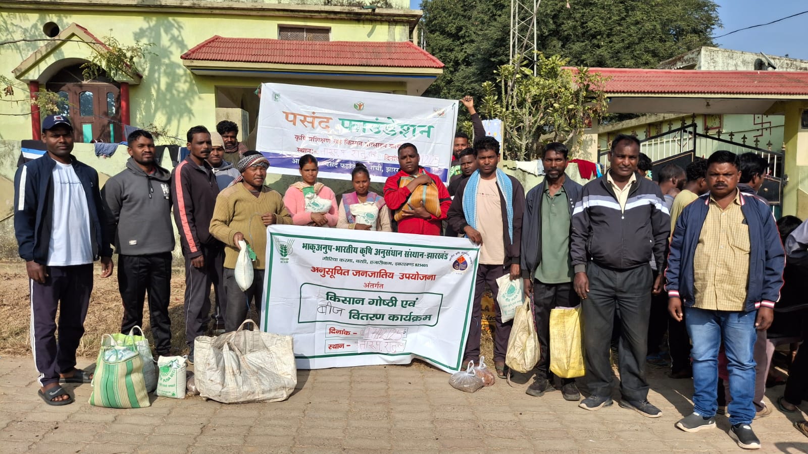 टीम एबीएन, रांची। पसंद फाउंडेशन के द्वारा भारतीय कृषि अनुसंधान केंद्र, बरही, हजारीबाग के मदद से अनुसूचित जनजातिय उपयोजना अंतर्गत तारुप पंचायत, रातू प्रखंड के कुल 100 जनजातिय किसानों को चना, मसूर तथा सरसों के बीज नि:शुल्क दिये गये।