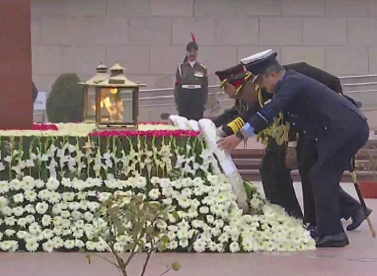 एबीएन सेंट्रल डेस्क। सीडीएस जनरल अनिल चौहान और तीन सेवा प्रमुखों- सेना प्रमुख जनरल मनोज पांडे, वायुसेना प्रमुख एयर चीफ मार्शल वीआर चौधरी और नौसेना प्रमुख एडमिरल आर हरि कुमार ने शनिवार को सातवें सशस्त्र बल पूर्व सैनिक दिवस पर राष्ट्रीय युद्ध स्मारक पर माल्यार्पण किया। रक्षा मंत्री राजनाथ सिंह उत्तराखंड के देहरादून छावनी में सातवें सशस्त्र बल भूतपूर्व सैनिक दिवस समारोह में शामिल होंगे।