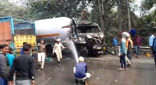 टीम एबीएन, कोडरमा/ रांची। कोडरमा थाना क्षेत्र अंतर्गत जमसोती नाला के पास रविवार की दोपहर दो ट्रकों की टक्कर में एक चालक की झुलसकर मौत हो गई। मृतक की पहचान नहीं हुई है। जानकारी के अनुसार गैस टैंकर बिहार से कोडरमा की तरफ आ रहा था। इसी दौरान कोडरमा घाटी में जमसोती नाला के पास कोडरमा की तरफ से आ रहे ट्रक से टक्कर हो गयी। घटना के बाद गैस टैंकर के केबिन में आग लग गयी और चालक की मौके पर ही झुलसने से मौत हो गई। इससे रांची पटना रोड पर एक घंटे तक जाम लगा रहा। सूचना पर पहुंचे अग्निशमन दल के कर्मियों ने आग पर काबू पाया।