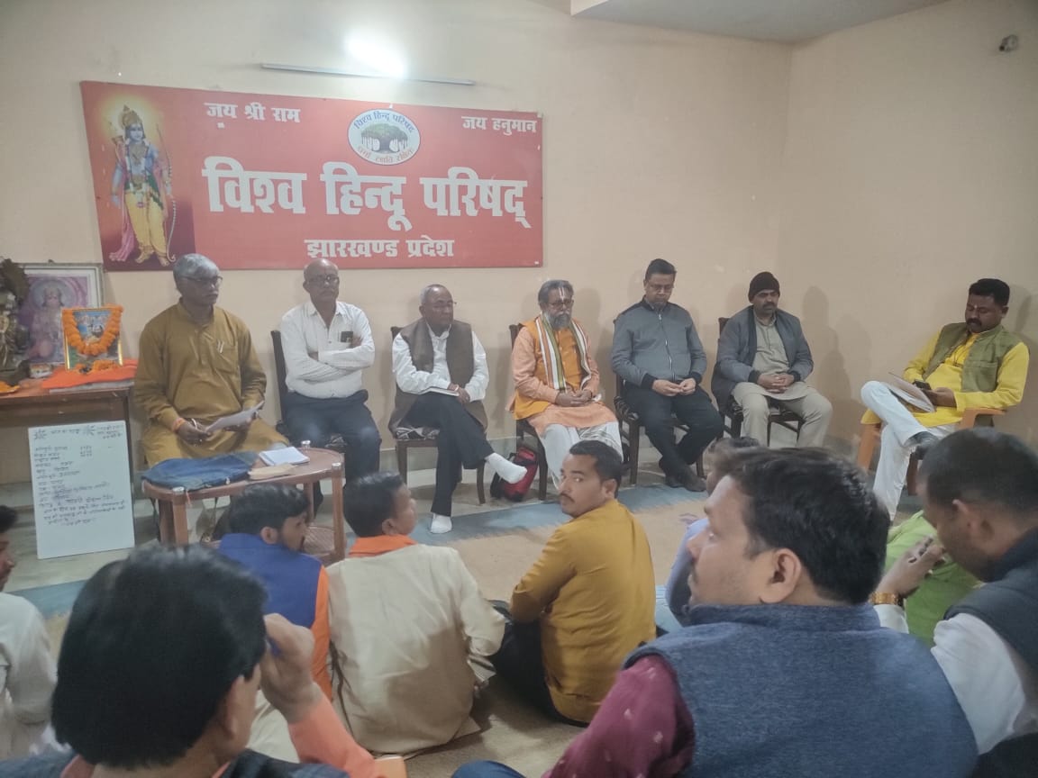 टीम एबीएन, रांची। विश्व हिंदू परिषद कार्यकारिणी की बैठक आज दिनांक 5 फरवरी 2022 को अपराह्न 1 बजे हरमू रोड स्थित विश्व हिंदू परिषद प्रांत कार्यालय में संपन्न हुई। बैठक की अध्यक्षता विश्व हिंदू परिषद झारखंड प्रांत कार्याध्यक्ष तिलक राज मंगलम तथा संचालन प्रांत मंत्री डॉ बिरेन्द्र साहू ने किया। बैठक का प्रारंभ संत रविदास जयंती के पावन बेला पर उनके चित्र के सामने दीप प्रज्वलन व पुष्प अर्पण करके किया गया।