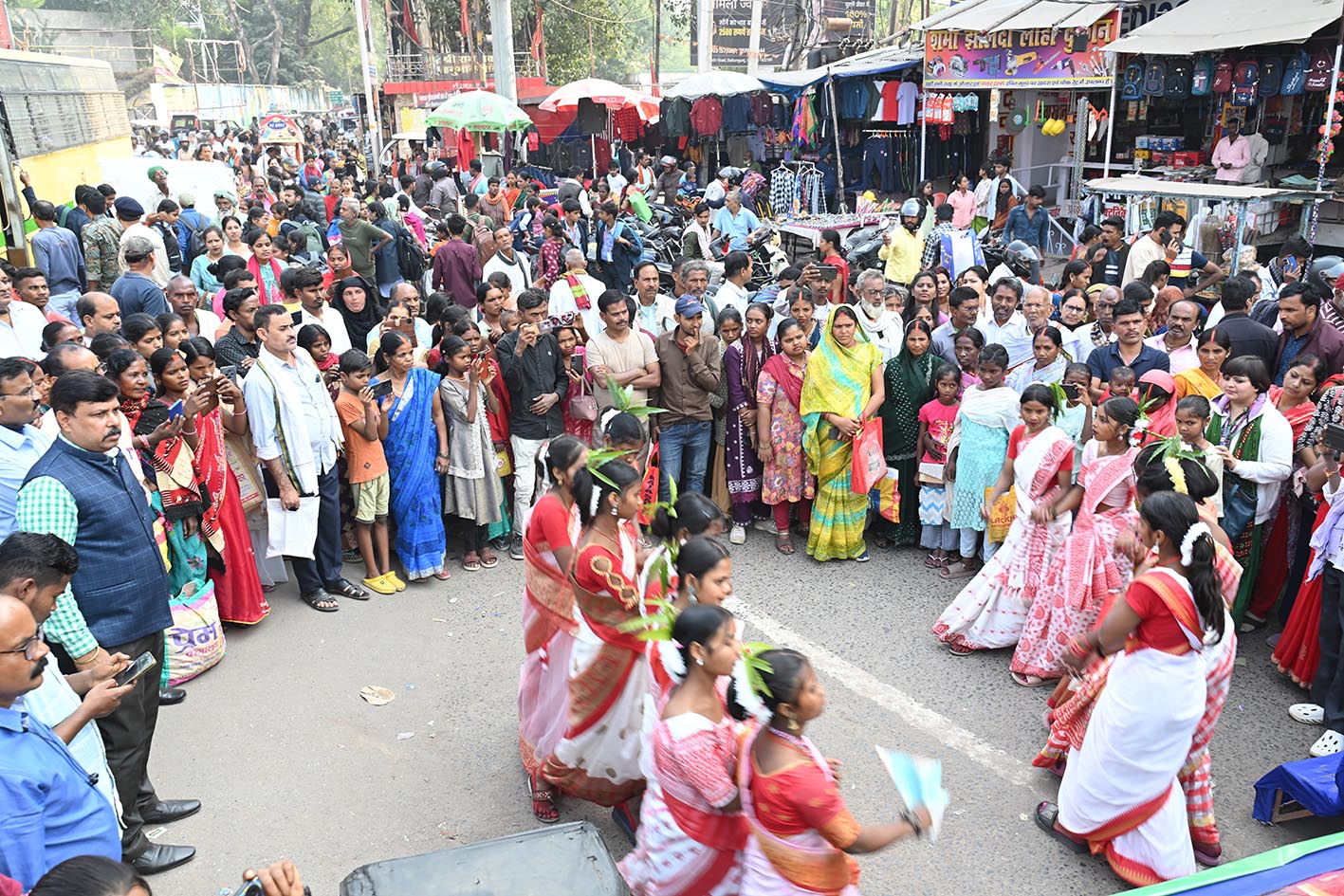 कार्यक्रम की शुरुआत पारंपरिक आदिवासी परिधानों में सजी छात्राओं द्वारा सड़क किनारे प्रस्तुत नृत्य से हुई। इसके उपरांत मंच पर गीत-नृत्य के रंग बिखरे। पारंपरिक पोशाकों में सजे छात्र-छात्राओं ने झारखंड के लोकनृत्य, नागपुरी, संथाली, करमा आदि की एक से बढ़कर एक प्रस्तुतियों से उपस्थित जनसमूह को मंत्रमुग्ध कर दिया।
