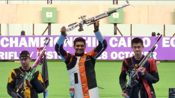 एबीएन स्पोर्ट्स डेस्क। भारत के शूटर रूद्राक्ष पाटिल ने शुक्रवार (14 अक्तूबर) को काहिरा में शूटिंग वर्ल्ड चैंपियनशिप में स्वर्ण पदक जीत लिया। वह 10 मीटर एयर राइफल स्पर्धा में चैंपियन बने। रुद्राक्ष पाटिल महान शूटर अभिनव बिंद्रा के साथ ऐसा करने वाले दूसरे भारतीय निशानेबाज हैं। पाटिल ने इस जीत के साथ ही पेरिस ओलंपिक का भी टिकट हासिल कर लिया। यह भारत का दूसरा ओलंपिक कोटा है। 18 साल के रूद्राक्ष पाटिल ने इटली के डानिलो डेनिस सोलाजो को 17-13 से हराया। एक समय वह फाइनल मुकाबले में पीछे चल रहे थे, लेकिन फिर शानदार वापसी की और मैच को जीत लिया। इस साल वर्ल्ड चैंपियनशिप से ओलंपिक के लिए चार कोटा उपलब्ध हैं। भारत ने हाल ही में क्रोएशिया में शॉटगन विश्व चैम्पियनशिप में पुरुष ट्रैप स्पर्धा में भौनीश मेंदीरत्ता के जरिए अपना पहला कोटा हासिल किया था। रूद्राक्ष ने पहली बार वर्ल्ड चैंपियनशिप में हिस्सा लिया है। वह मैच में एक समय 4-10 से पीछे चल रहे थे। इटली के निशानेबाज ने फाइनल में ज्यादातर मौकों पर बढ़त बनाए रखी, लेकिन रुद्राक्ष ने अंत में जबरदस्त वापसी की और विजेता बने। रुद्राक्ष ने क्वालिफिकेशन में शीर्ष स्थान हासिल किया था और रैंकिंग राउंड में दूसरे स्थान हासिल करने के बाद उन्होंने ओलंपिक कोटा पक्का कर लिया था। बीजिंग ओलंपिक चैंपियन अभिनव बिंद्रा ने 2006 में क्रोएशिया के जाग्रेब में 10 मीटर एयर राइफल स्पर्धा में विश्व चैम्पियनशिप का स्वर्ण जीता था।