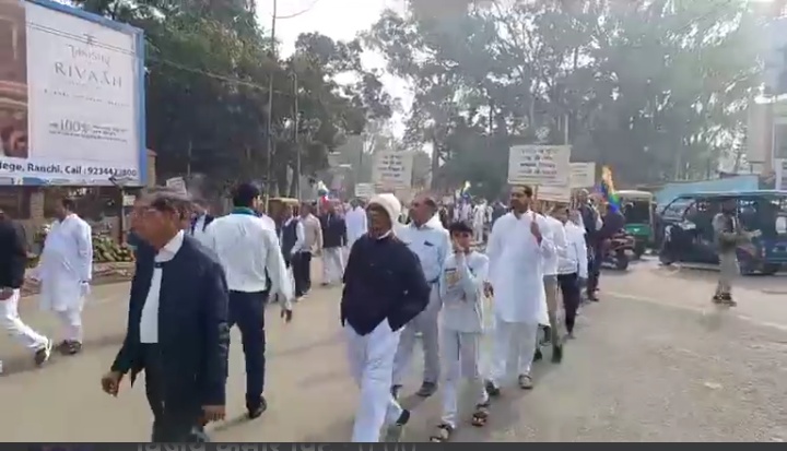 टीम एबीएन, रांची। झारखंड के गिरिडीह जिले के सम्मेद शिखर (पारसनाथ) को पर्यटन स्थल घोषित किये जाने के बाद देशभर में जैन समुदाय की ओर से प्रदर्शन और आंदोलन किए जा रहे हैं। राज्य के कई हिस्से में भी आंदोलन किए गए हैं। इसी क्रम में मंगलवार को रांची के जैन समुदाय के सैकड़ों लोगों ने मौन जुलूस निकाला। इसके बाद जैन समुदाय के एक प्रतिनिधिमंडल ने राजभवन जाकर राज्यपाल रमेश बैस को ज्ञापन सौंपा। इस प्रतिनिधिमंडल में झारखंड प्रांतीय मारवाड़ी सम्मेलन के प्रांतीय अध्यक्ष बसंत कुमार मित्तल, पदम् चंद जैन, संपत रामपुरिया, सुभाष जैन और प्रदीप बाटलीवाल थे।