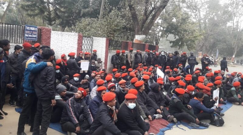 टीम एबीएन, रांची। रिम्स में काम करने वाले सुरक्षाकर्मी और ट्रॉली कर्मी अपने बकाया वेतन को लेकर बुधवार की सुबह से हड़ताल पर चले गये हैं। सुरक्षाकर्मी और ट्रॉली कर्मियों को पिछले चार-पांच महीने से वेतन नहीं मिला है। हटाये जाने की अधिसूचना के विरोध में हड़ताल पर हैं। अस्पताल में इलाज कराने के लिए पहुंचे मरीजों और उनके परिजनों को कई परेशानियों का सामना करना पड़ रहा है।