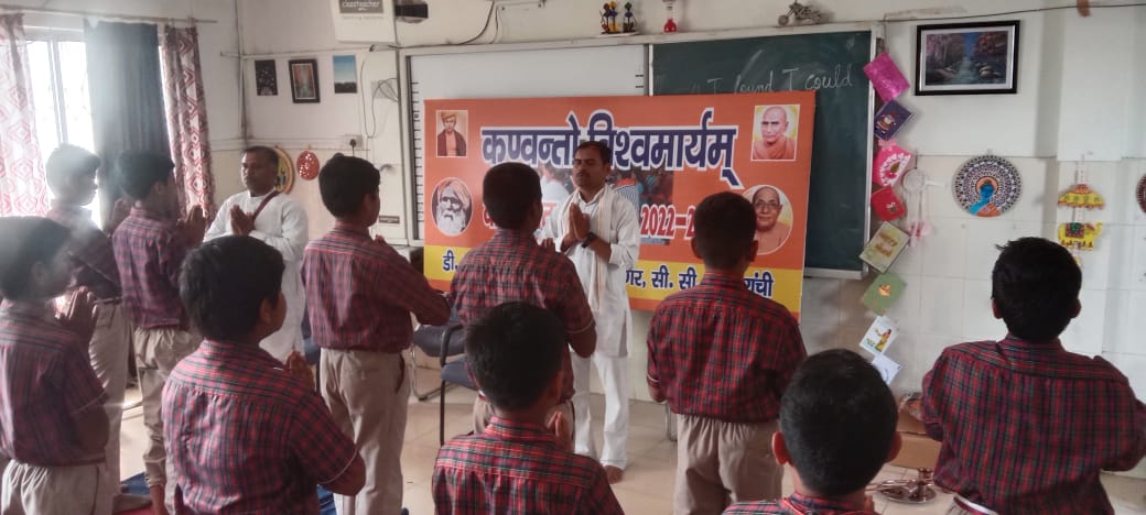 संस्कारविहीन व्यक्ति जीवन में सफल नहीं हो सकता है। ईश्वर के प्रति आस्था रखते हुए व्यक्ति को कर्म करने के लिए निरत होना चाहिए। प्राचार्य श्री एसके सिन्हा ने कहा कि शिक्षा में अगर संस्कार हो, चरित्र हो तो सोने पे सुहागा है। उन्होंने बच्चों में संस्कार विकसित करने के लिए विद्यालय के प्रयासों की सराहना की। इसके पहले बच्चों को प्राणायाम की बारीकियों से परिचय कराया गया तथा उनसे विभिन्न योग कराये गये। विद्यालय के वरीय शिक्षक डॉ वैद्यनाथ मिश्र, श्री पूर्णचंद्र आर्य आदि शिक्षक शिक्षिकाओं की भूमिका रही।