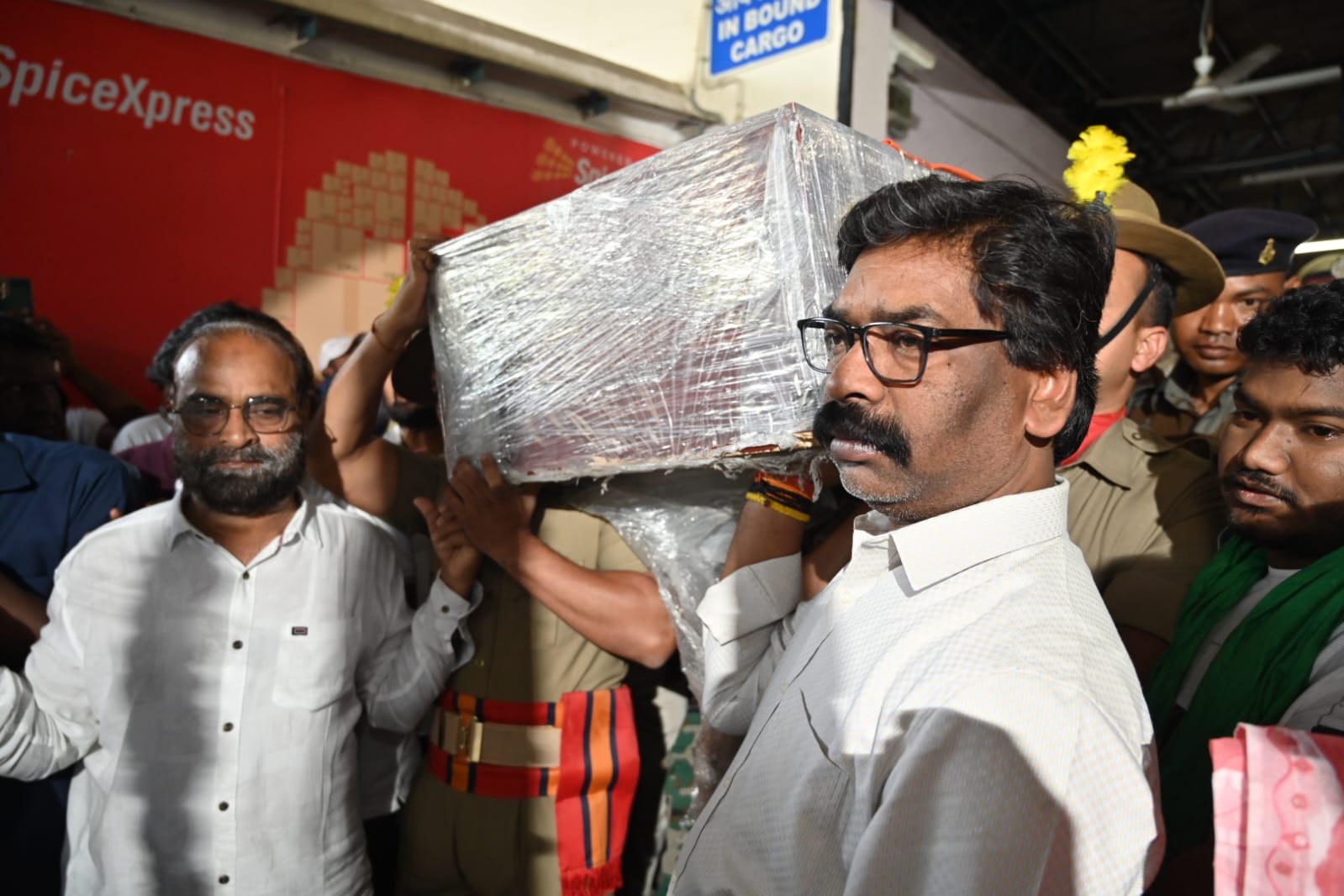 टीम एबीएन, रांची। झारखंड के शिक्षामंत्री जगरनाथ महतो का पार्थिव शरीर विशेष विमान से आज (शुक्रवार) बिरसा मुंडा एयरपोर्ट पहुंचा। एयरपोर्ट से सीधे महतो के पार्थिव शरीर को विधानसभा ले जाया जाया गया। इस दौरान मुख्यमंत्री ने महतो के पार्थिव शरीर को कंधा दिया। फूल से सजे वाहन में महतो के पार्थिव शरीर को विधानसभा ले जाया गया।