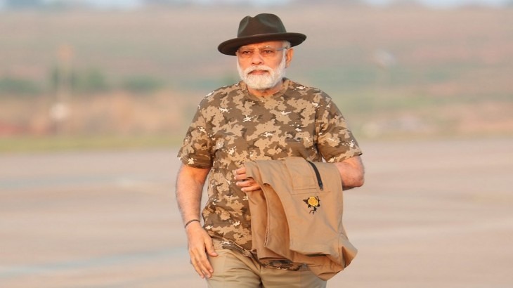 इस फोटो में प्रधानमंत्री एक बिल्कुल अलग और खास लुक में नजर आ रहे हैं। पीएमओ के ट्विटर से शेयर की गई तस्वीर में प्रधानमंत्री मोदी खाकी रंग की पेंट और प्रिंटेड टी शर्ट में नजर आ रहे हैं। पीएम मोदी ने काले कलर की टोपी पहनी हुई है और उसी रंग के जूते भी हैं। पीएम ने ऊपर से हाफ जैकेट डाली हुई है। पीएमओ ने बताया कि पीएम बांदीपुर बाघ अभयारण्य में 11 बजे बाघ गणना के आंकड़े जारी करेंगे।