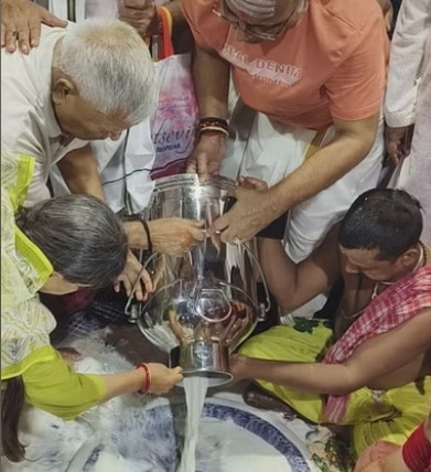 दोनों ने पूरे विधि विधान से बाबा बैद्यनाथ की पूजा अर्चना की, उसके बाद बाबा पर दुग्धाभिषेक भी किया।