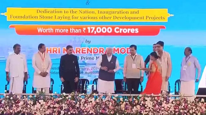 हेलीकॉप्टर द्वारा मदुरै से थूथुकुडी पहुंचे श्री मोदी ने सड़क परिवहन व राजमार्ग, रेलवे, बंदरगाह, जहाजरानी और जलमार्ग मंत्रालयों द्वारा संयुक्त रूप से आयोजित कार्यक्रम में 17 हजार करोड़ रुपये से अधिक के निवेश की 36 बुनियादी ढांचा परियोजनाओं का अनावरण किया।