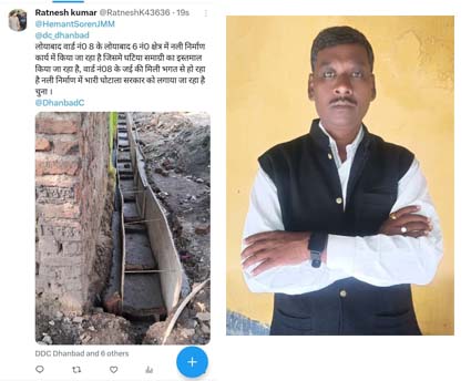 एबीएन न्यूज नेटवर्क, धनबाद/ रांची। बिहार जनता खान मजदूर संघ के केंद्रीय संगठन सचिव रत्नेश कुमार ने झारखंड सरकार धनबाद डीसी सहित धनबाद नगर निगम को ट्वीट कर लिखा कि लोयाबाद वार्ड नं0 8 के लोयाबाद नं0 6 क्षेत्र में नली निर्माण कार्य में किया जा रहा है।