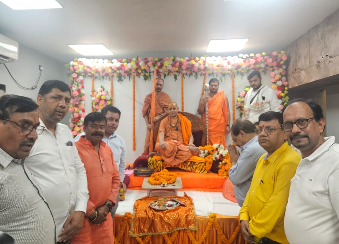 अग्रसेन भवन के सभागार में शंकराचार्य महाराज जी के चरण पादुका खड़ाऊ का पूजन मुख्य यजमान विजय हरलालका छोटू सपत्नीक व परिवार द्वारा पूरे विधि-विधान से किया। शंकराचार्य जी ने सभी उपस्थित धर्म प्रेमियों को आशीर्वचन एवं प्रसाद दिया। शंकराचार्य श्री सदानंद सरस्वती महाराज महाराजा अग्रसेन भवन में तीन दिनों तक प्रवास करेंगे।