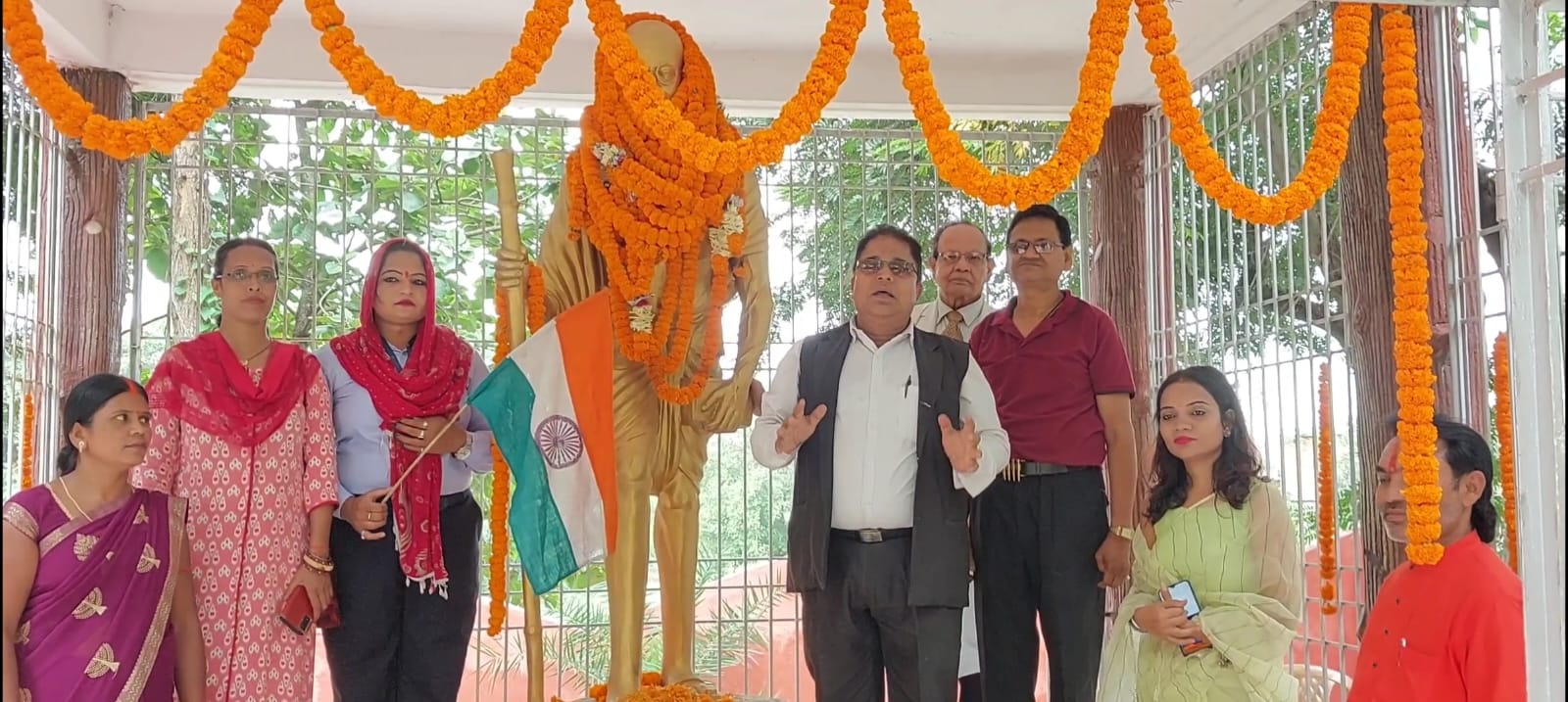 टीम एबीएन, हजारीबाग। 2 अक्टूबर गांधी स्मारक कुमार टोली हजारीबाग में कीर्तन का आयोजन हुआ और गांधी जी के प्रतिमा पर लोगों ने पुष्पांजलि इनकी जयंती मनाई। जयंती समारोह पर सुरेश ठाकुर प्रदेश अध्यक्ष भारतीय नाई समाज एवं प्रदेश सचिव राष्ट्रीय ओबीसी मोर्चा हजारीबाग झारखंड ने कहा कि एक बार की बात है की गांधी जी को अंग्रेजों ने ट्रेन से धक्का देकर बाहर फेंक दिया था। उसी समय गांधीजी ने संकल्प लिया कि आज तुम हमें ट्रेन से बाहर फेंके हो मैं तुझे इस देश से बाहर फेंक दूंगा, उनका इस संकल्प से आज देश आजाद हुआ और हम स्वतंत्र महसूस कर रहे है। लेकिन आज का दृश्य है चाहे कोई भी राजनीतिक दल के लोग हो या सामाजिक कार्यकर्ता संकल्प तो लेते हैं। पर संकल्प पर चल नहीं पाते हैं इसीलिए देश का विकास नहीं हो रहा है। इस जयंती समारोह पर मेरा सभी लोगों से आग्रह होगा कि देश के विकास के लिए संकल्प लीजिए और उस संकल्प पर चलने का प्रयास करें तभी देश का विकास हो सकता है। साथ में डॉक्टर हीरा लाल साहा, भारतीय नाई समाज के जिला उपाध्यक्ष प्रोवेशन अधिकारी सुनील कुमार ठाकुर, जदयू के जिलाध्यक्ष खुशबू कुमारी, रीना, माया, सुजाता अन्य कई लोग शामिल थे।