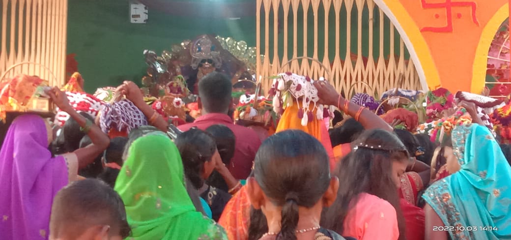 टाटीझरिया, हजारीबाग (संदीप पांडेय)। प्रखण्ड के झरपो, टाटीझरिया, कोल्हू गांव के दुर्गा पूजा मंदिर प्रांगण में अष्टमी पूजा को लेकर काफी श्रद्धालुओं का हुजूम देखा गया। पूजा प्रांगण में आचार्यों ने विधिवत मंत्रोच्चार जय त्वं देवी चामुंडे जय भूतातहारिणी, जय सर्वगते देवी कालरात्रि नमोस्तुते... सर्व मङ्गल मांगल्ये शिवे सर्वार्थ साधिके शरण्ये त्र्यंबके गौरी नारायणी नमोस्तुते... के साथ माता जगत जननी दुर्गा की पूजा श्रद्धालु कर रहे थे। सम्पूर्ण क्षेत्र जय माता दी के नाम से गूंजयमान हो गया। मौके पर टाटीझरिया थाना प्रभारी जितेंद्र कुमार और इचाक थाना प्रभारी धनंजय सिंह ने शांति व्यवस्था को लेकर अपने दल बल के साथ जायजा लिया। वहीं क्षेत्रवासियों तथा श्रद्धालुओं को भक्ति भाव के साथ पूजा करने को अपील की। उन्होंने यह भी कहा कि शांति व्यवस्था भंग करने वाले लोगो को चिह्नित कर सूचित करें। उनपर त्वरित कार्रवाई होगी। प्रशासन आपकी सहायता के लिए हमेशा आप सबों के साथ है।