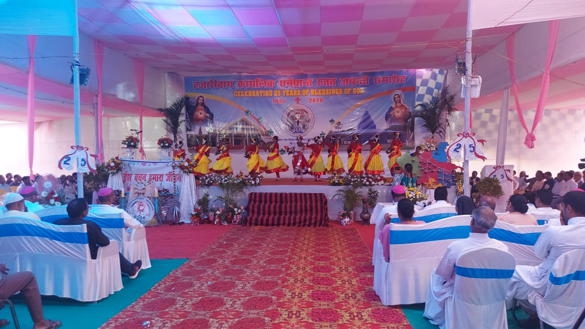 टीम एबीएन, हजारीबाग। 12 मई 1995 ई को डालटेनगंज धर्मप्रांत का विभाजन कर हजारीबाग धर्म प्रांत की स्थापना की गई। इसके अंतर्गत झारखंड राज्य के चतरा, रामगढ़, हजारीबाग, कोडरमा और बोकारो जिलों को समायोजित किया गया है। स्वर्गीय धर्माध्यक्ष रेभेरेन चार्ल्स सोरेंग येस ने प्रथम धर्माध्यक्ष के रूप में दिनांक 23 जुलाई 1995 को पदभार ग्रहण किया। हजारीबाग धर्मप्रांत का मुख्यालय धर्मप्रांतीय प्रशिक्षण केंद्र मॉरिस रोड जुलू पार्क में स्थित है। सन 1912 ई में बिशप चार्ल्स सोरेंग येस के सेवानिवृत्त हो जाने पर धर्म अध्यक्ष आनंद दूसरों की नियुक्ति 8 सितंबर 2012 ई को हजारीबाग धर्मप्रांत के द्वितीय धर्माध्यक्ष के रूप में हुई। धर्मप्रांत में धर्मप्रांतीय पुरोहित धर्मसंघीय पुरोहित, धर्मसंघीय बंधुगण और धर्मसंघीय धर्मबहनें मिशनरी और प्रेरितिक कार्यों, समाज सेवा, शैक्षणिक और स्वास्थ्य सेवा कार्यों में अपनी सेवाएं दे रहे हैं। धर्म प्रांत के निर्माण और विकास में येसु समाजी धर्मसंघ और इस प्रोविंस का बहुत ही महान और प्रशंसनीय योगदान रहा है। 11 मई 2020 को हजारीबाग धर्मप्रांत अपना ने अपना 25 वर्ष पूरा किया। किंतु कोरोना महामारी के कारण 2020 एवं 2021 को रजत जयंती समारोह नहीं मनाया जा सका। आज दिनांक 8 अक्टूबर 2022 को हजारीबाग धर्मप्रांत के वर्तमान धर्माध्यक्ष आनंद जोजो की अगुवाई में रजत जयंती समारोह बहुत ही धूमधाम से संपन्न हुआ। इस समारोह का शुभारंभ 9 बजे भव्य ख्रीस्तयाग पूजा समारोह के साथ शुरू हुआ इस समारोह में विशिष्ट अतिथि के रूप में निम्नलिखित बिशप शामिल हुए : रांची के आर्चबिशप तथा जेएचएएएन रीजन के चेयरमैन फेलिक्स टोप्पो, दुमका धर्मप्रान्त के बिशप जूलियस मरांडी, खूंटी धर्मप्रांत के बिशप विनय कंडुलना, पोर्ट ब्लेयर धर्मप्रांत के बिशप विशुभासम सेलभाराज, डाल्टेनगंज के बिशप थ्योदोर मसकरनेहास, हज़ारीबाग धर्मप्रांत के बिशप आनंद जोजो, गुमला धर्मप्रांत से फादर लाइनस पीन्गल एक्का, हजारीबाग येसु समाज के प्रोविनेंसियल सुपीरियर फादर संतोष मिंज येस, रांची येसु समाज के प्रोविनेंसियल सुपीरियर फादर अजित कुमार खेस एवं फादर रेमोंन्ड केरकेट्टा, मदर जेनरेल डीएसए रांची सिस्टर लिली टोपनो, प्रोविनेंसियल सुपीरियर डीएसए रांची प्रोविन्स सिस्टर मंजुला किंडो, प्रोविनेंसियल सुपीरियर एससीजेएम रांची सिस्टर मेरी जोसफ, रांची सीएसएस की प्रोविनेंसियल सुपीरियर सिस्टर कृपा पौल, पटना प्रोविन्स एसएच की प्रोविनेंसियल सुपीरियर सिस्टर ज्योत्सना, एचसी कोंग्रर्गशन की प्रोविनेंसियल सुपीरियर वीणा अक्कल, हज़ारीबाग एफसीसी की प्रोविनेंसियल सुपीरियर सिस्टर लिली थॉमस, सीएमसी हजारीबाग प्रोविन्स की प्रोविनेंसियल सुपीरियर सिस्टर बिना थे