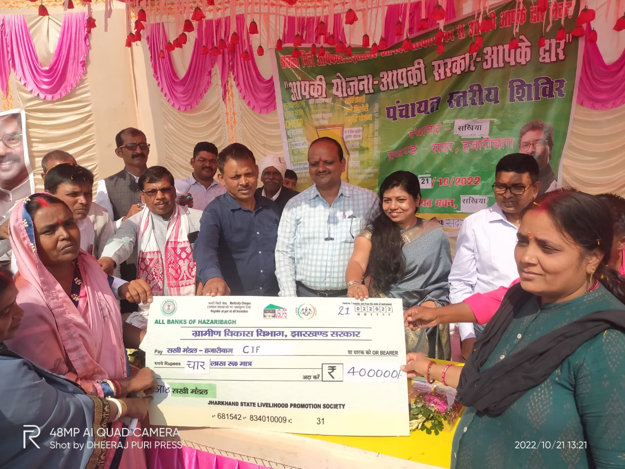 टीम एबीएन, हजारीबाग। आज दिनांक 21/10/2022 को सदर प्रखंड के सखिया पंचायत भवन में आपकी योजना आपकी सरकार आपके द्वार कार्यक्रम का आयोजन किया गया। प्रखण्ड विकास पदाधिकारी, गुंजन कुमारी सिन्हा, अंचल अधिकारी, राजेश कुमार, 20 सूत्री अध्यक्ष, राजीव कुमार मेहता, सखिया पंचायत के मुखिया के द्वारा इतियाज आलम के द्वारा संयुक्त रूप से दीप प्रज्जवलित कर शिविर का शुभारंभ किया गया। मंचासीन पदाधिकारियों एवं जन-प्रतिनिधियों सरकार की जनकल्याणकारी योजनाओं के बारे विस्तृत जानकारी दी गई। शिविर में बड़ी संख्या में ग्रामीण उपस्थित होकर इसका लाभ लेते देखे गए। शिविर में आपूर्ति, कल्याण, पशुपालन, पेंशन, मनरेगा, कृषि, राजस्व, स्वास्थ्य, जेएसएलपीएस, पेयजल, विद्युत विभाग आदि के स्टॉल लगाये गये थे। इस शिविर में मनरेगा योजना के तहत कुल 41 योजना, जिसमें कुप 06, तालाब 01, टीसीबी 11, शेड 01, दीदी बाड़ी 20, खेल मैदान 01, जिसकी प्राक्कलित राशि 49,44,765 रुपये की स्वीकृति प्रदान की गयी। प्रधानमंत्री आवास योजना के तहत रश्मि देवी पति जगदीश साव को आवास पूर्ण कर लेने के उपरांत गृह प्रवेश कराया गया। जेएसएलपीएस के द्वारा 04 समूहों में 04 चार लाख का क्रेडिट लिंकेज एवं 05 समूहों को उ.उ.छ के तहत 5,00,000 लाख रुपए का चेक प्रदान किया गया। बाल विकास परियोजना के द्वारा सवित्रीबाई फूलो किशोरी समृद्धि योजना के तहत 81 किशोरियों को स्वीकृति पत्र प्रदान किया गया। 122 जरूरतमंदों के बीच कंबल का वितरण किया गया। स्वास्थ्य विभाग के द्वारा 120 ग्रामीणों का स्वास्थ्य जांच एवं 100 का टीकाकरण किया गया। शिविर में कुल 486 आवेदन पत्र प्राप्त हुए जिसमें 269 आवेदनों का आॅन स्पॉट निष्पादन किया गया। मौके पर अमित कुमार पासवान उप मुखिया, रवि कुमार पंचायत समिति सदस्य, अरुण कुमार यादव पूर्व मुखिया, सुभाष कुमार यादव पूर्व पंचायत समिति सदस्य, महेन्द्र बिहारी, प्रमिला गुप्ता, देवंती देवी, गीता देवी, सुरेश यादव, रंजित केरकेट्टा, मंजु देवी, जबिना प्रवीन, कृष्ण कुमार, वार्ड सदस्य के रूप में सीडीपीओ, शैल बाला, बीपीएम, जेएसएलपीएस, दिव्या सिन्हा, बीपीओ, उज्जवल किशोर, प्रखंड आपूर्ति पदाधिकारी, डॉ राजेश कुमार शर्मा, चिकित्सक, सुनील कुमार प्रखंड समन्वयक, पंचायत राज, बिरेंद्र नारायाण सिंह, पंचायत सचिव, खेमलाल कुमार, रोजगार सेवक के अलावे प्रखंड सह अंचल के कर्मी उपस्थित थे।
