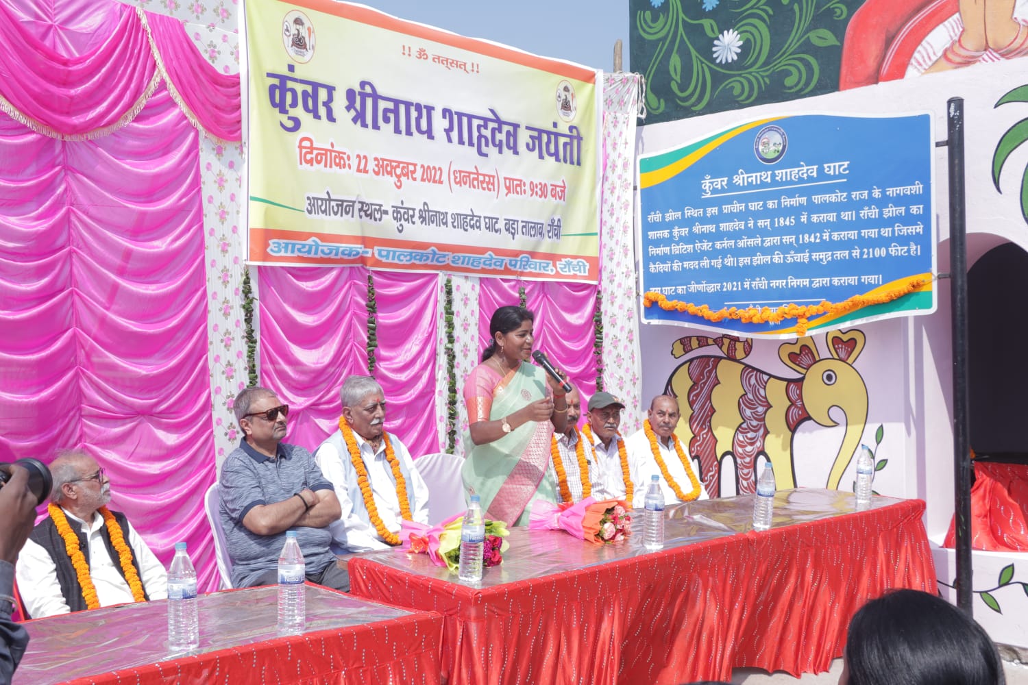 टीम एबीएन, रांची। पालकोट शाहदेव परिवार के पूर्वज कुंवर श्रीनाथ शाहदेव जी की 206 वीं जयंती रांची बडा तालाब के दक्षिण में स्थित कुंवर श्रीनाथ शाहदेव घाट में मनाया गया। कार्यक्रम में महापौर रांची नगर निगम डॉ आशा लकड़ा मुख्य अतिथि के रूप में उपस्थित रहीं। विदित हो कि कुंवर श्रीनाथ ने इस घाट का निर्माण सन 1845 ई0 में क्षेत्र के लोगों के लिए करवाया ताकि वे यहां अपना धार्मिक, सामाजिक एवं सांस्कृतिक रीतियों को परिपूर्ण कर सकें। कार्यक्रम का शुभारंभ दीप प्रज्वलन से एवं कुंवर श्रीनाथ की स्मृति में जलाशय में दीप दान कर किया गया। महापौर डॉ आशा लकड़ा ने कहा कि हमें अपनी विरासत, संस्कृति, भाषा और रीतियों का संरक्षण खुद करना है। इसी कड़ी में इस घाट का पुनरुद्धार रांची नगर निगम द्वारा कराया गया ताकि रांची शहर की यह प्राचीन धरोहर बची रहे। उन्होंने यह भी कहा कि प्राचीन घाट को सुरक्षित और स्वच्छ रखना हम नागरिकों का कर्तव्य है। प्राचीन घाट का पुनरुद्धार करने वाली एजेंसी आईटीआरएचडी के निदेशक एवं सभा में विशिष्ट अतिथि श्री एसडीसिंह जी ने कहा कि इस प्राचीन घाट का पुनरुद्धार सुर्खी चूना के उपयोग से ही किया गया है। उन्होंने इस प्राचीन ईमारत की निर्माण शैली की भी सराहना की जो 177 वर्षों से पानी के ऊपर अडिग खड़ी है। भारतीय पुरातत्व सर्वेक्षण (ASI) के मानकों के अनुसार यदि कोई भी संरचना या ईमारत सौ वर्षों से अधिक पुरानी हो जाती है तो उसे ऐतिहासिक धरोहर का दर्जा प्राप्त हो जाता है। विदित हो कि रांची बड़ा तालाब एवं घाट को पालकोट शाहदेव परिवार के पूर्वज नवल किशोर नाथ शाहदेव द्वारा सन 1916 में रांची म्युनिसिपेलिटी को लीज पर दे दिया गया था एवं लीज के शर्तों में नवल किशोर शाहदेव ने रांची बड़ा तालाब एवं अपने पुरखे द्वारा निर्मित इस प्राचीन घाट के रख रखाव एवं सुरक्षा का जिम्मा रांची म्युनिसिपेलिटी को सौंप दिया था। वर्षों से यह घाट उपेक्षित एवं जीर्ण-शीर्ण अवस्था में था। वर्ष 2021 में इस घाट का पुनरुद्धार रांची नगर निगम द्वारा करवाया गया। पालकोट शाहदेव परिवार के सदस्यों ने उनके पुरखे द्वारा बनवाई गई प्राचीन घाट का पुनरुद्धार करने के लिए महापौर एवं रांची नगर निगम को धन्यवाद ज्ञापित किया। सभा में श्री सर्वेश्वरी समूह शाखा रांची के उपाध्यक्ष विभूति सहाय एवं शाखा मंत्री राधेश्याम सिंह उपस्थित रहे। इनके साथ ही सभा में तारा नाथ शाहदेव, अभय सहाय, महेंद्र नाथ शाहदेव, समीर नाथ शाहदेव, नवीन कुमार, आदित्य नाथ शाहदेव, जयकुमार नाथ शाहदेव, अम्बिका नाथ शाहदेव एवं पालकोट शाहदेव परिवार के सभी वरिष्ठ एवं युवा सैकड़ों सदस्य उपस्थित रहे। सभा में ऋषि अजातशत्रु नाथ शाहदेव, रामचंद्र नाथ शाहदेव एवं नागदमनी नाथ शाहदेव ने भी अपने विचा