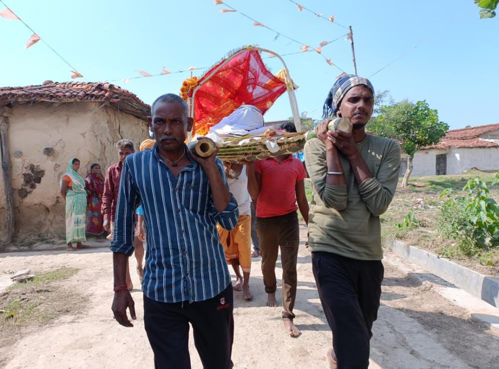 टीम एबीएन, कटकमसांडी (हजारीबाग)। सामाजिक सरोकार का बदला सुलमी गांव में साफ देखने को मिल रहा है। यहां तक की बेटा-बेटी में फर्क की लकीर भी मिट रही है। युवा पत्रकार मासूम कुमार के दादा सोमवार को सुलमी गांव निवासी सुखदेव पांडेय 85 वर्षीय का निधन हो गया । सुखदेव पांडेय का भरा पूरा परिवार था । परंतु जब घर से शव यात्रा निकला तो देखने लायक थी। सुखदेव पांडेय के पुत्रवधू चम्पा देवी ,उषा देवी ,व पुत्री,कंचन देवी, अंजू देवी,पिंकी देवी,नीलम देवी , छोटी देवी , ने अर्थी को कंधा दिया। पुत्रवधू व पुत्रियों द्वारा अर्थी को कंधा दिया जाना सामाजिक बदलाव का एक अच्छा नजारा था। लोग इन लोगों की पहल को काफी सराहना कर रहे थे। सुखदेव पांडेय का अग्नि संस्कार स्थानीय श्मशानघाट में किया गया। मुखाग्नि का रस्म उनका बड़ा पुत्र मिथिलेश पांडेय ने निभाया । बताया गया की घर से जैसे ही शव यात्रा श्मशान घाट के लिए निकला। वैसे ही पुत्रवधू व बेटियां ने अर्थी को कंधा दिया । हालांकि मौके पर उपस्थिति रिश्तेदारो द्वारा कुछ दूरी के बाद अर्थी को कंधा देकर श्मशान घाट पहुंचाया । पुत्रवधू व बेटियां द्वारा शव को कंधा देकर सामाजिक सरोकार का एक नया अध्याय शुरू किया। इसकी चर्चा हर ओर हो रहा है। लोग काफी सराहना कर रहे हैं। लोगों का मानना है कि अब धीरे-धीरे बदलाव की बयार बहने लगी है। इस तरह के कदम से भेदभाव की खाई समाप्त भी हो रहा है। सुखदेव पांडेय पत्रकार मासूम कुमार के दादा थे। शव यात्रा में काफी संख्या में लोग शामिल हुए। उनके निधन पर बुद्ध जीवो के साथ-साथ प्रतिनिधियों ने शोक व्यक्त किया। शोक व्यक्त करने वालों में पंचायत समिति सदस्य प्रदीप मिश्रा , विधायक प्रतिनिधि किशोरी राणा , बैधनाथ पांडेय , विजयकांत पांडेय, लालदेव पांडेय , बजरंग साव, संजय पाण्डेय , संतोष पांडेय , जीवन राम , राजेश साव , बद्री साव , बिनोद राम ,आनंद पांडेय , दशरथ पांडेय ,संजय पांडेय ,योगेश पांडेय , संजय रवि ,पंकज पांडेय,रविन्द्र पांडेय, हर्षी पांडेय, महेंद्र साव , प्रमोद पांडेय ,अनुज , प्रदीप, संदीप , चरण राम, छोटू पांडेय, निवास पांडेय, प्रशांत, मुकेश, कल्लू यादव, तुलसी पांडेय, जयनारायण साव, ज्ञानी साव सहित कई लोग शामिल थे।