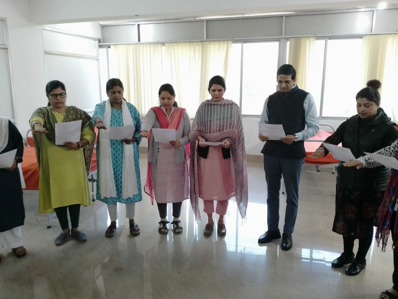 वन स्टॉप सेंटर का निरीक्षण के दौरान निदेशक समाज कल्याण महिला बाल विकास एवं सामाजिक सुरक्षा विभाग ने उपस्थित जिला समाज कल्याण पदाधिकारी, सभी बाल विकास परियोजना पदाधिकारी एवं कर्मियों के साथ संविधान दिवस के उपलक्ष्य में सभी को शपथ दिलायी।